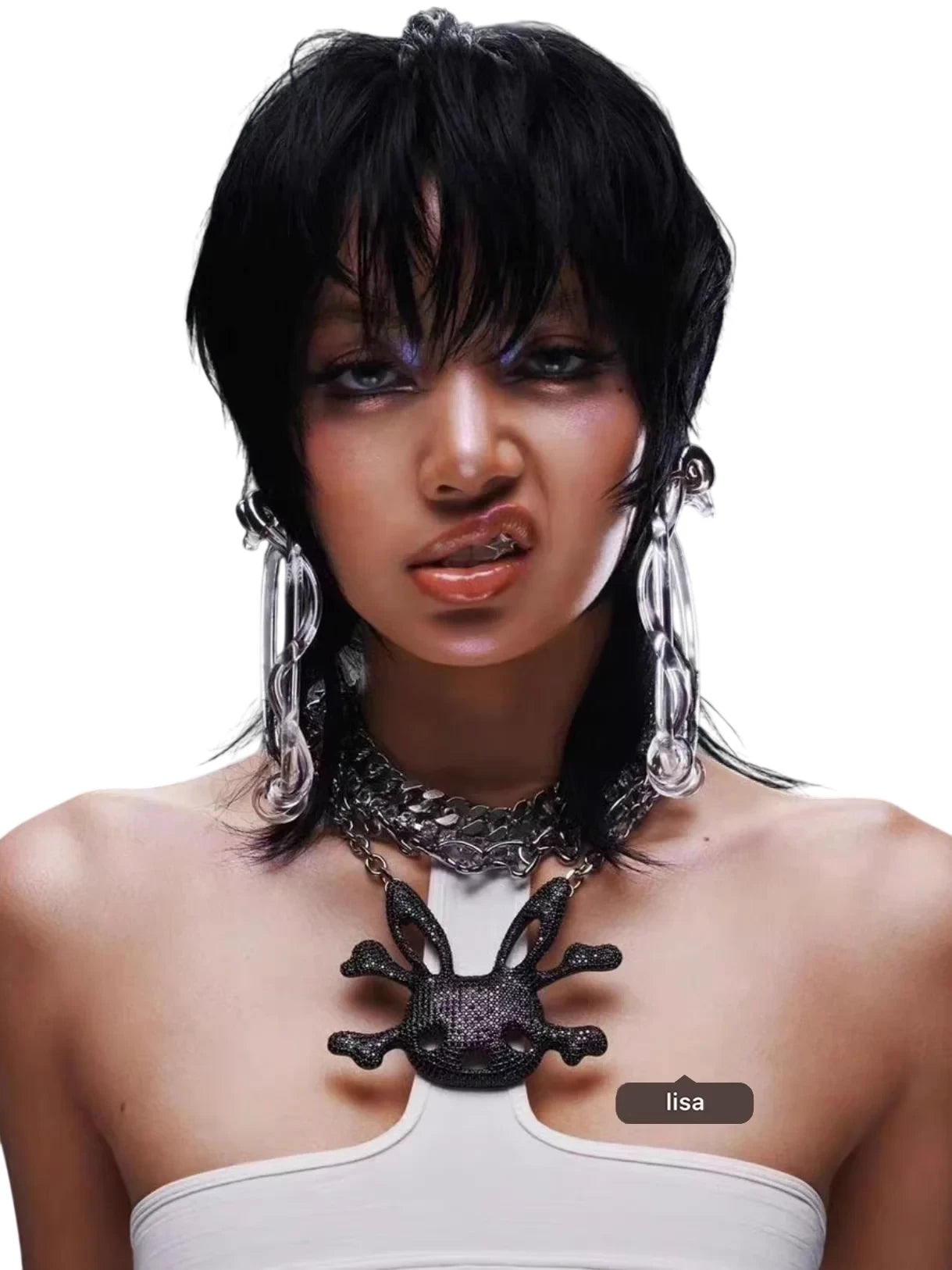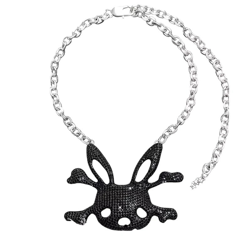 CFIERCE Crystal Bunny Skull Pendant Necklace
