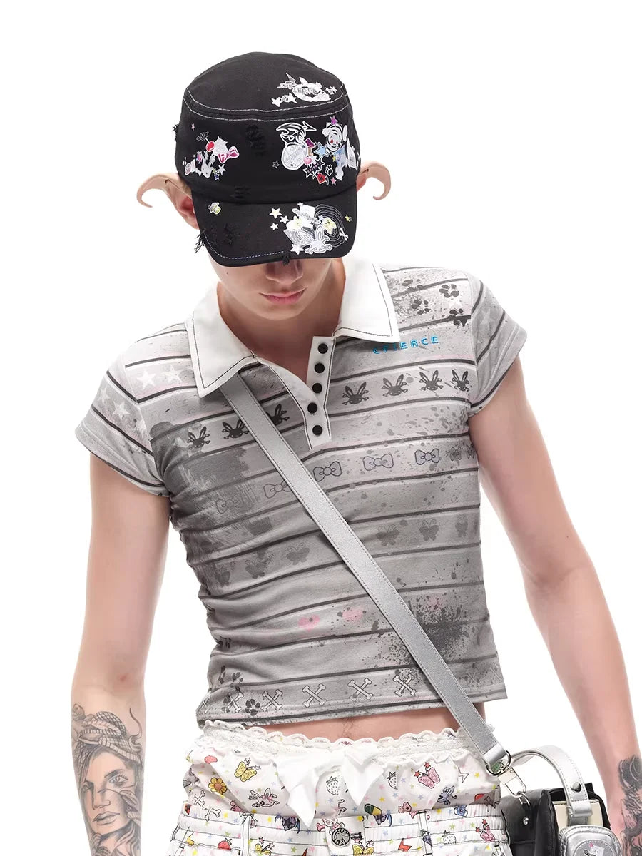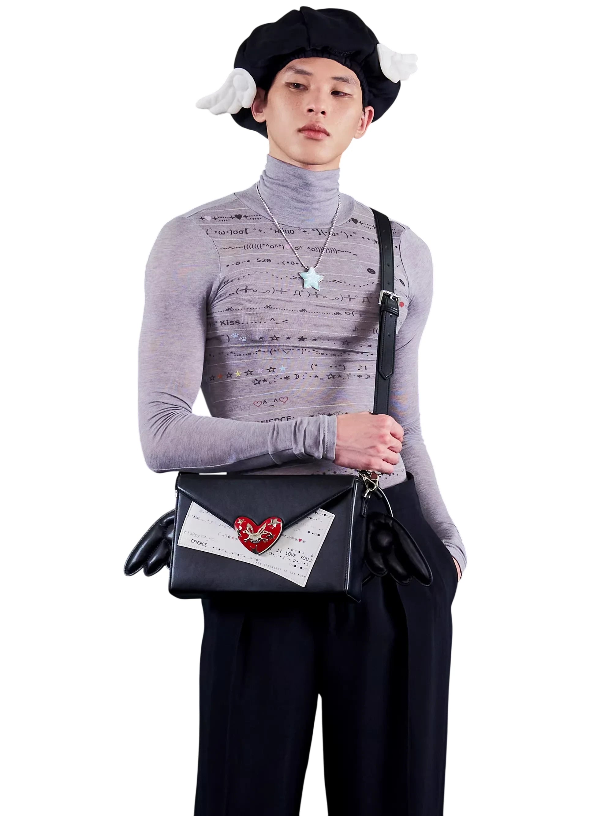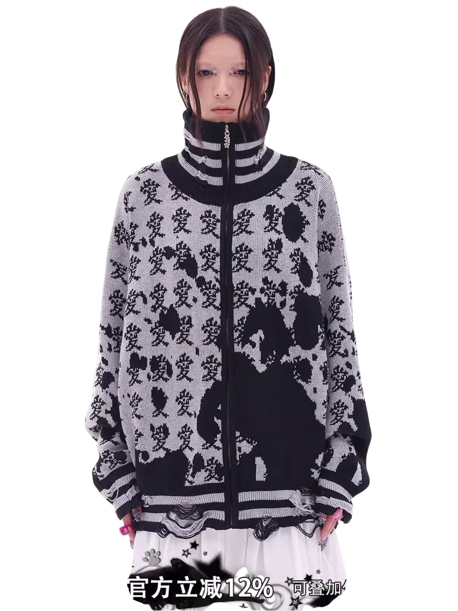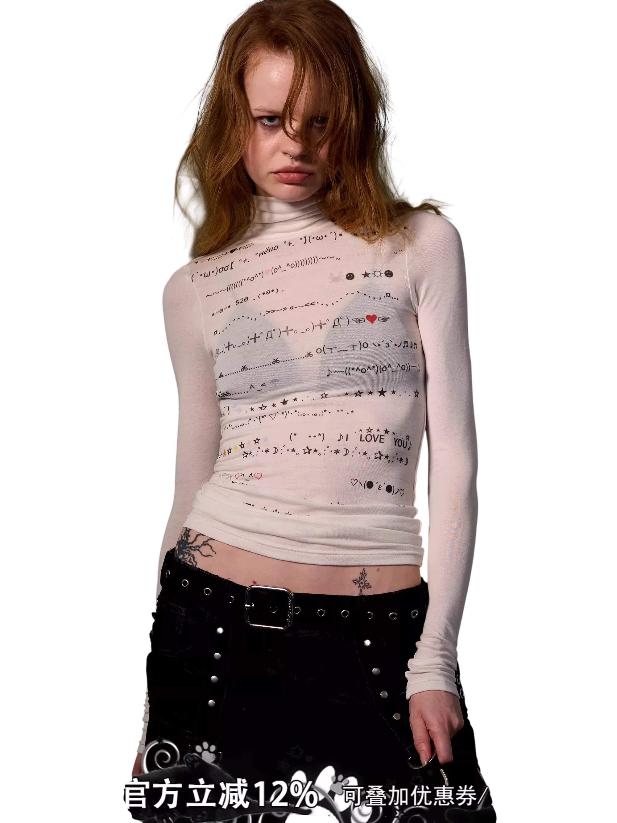 CFIERCE Emoticon Print Wool Blend Turtleneck Top