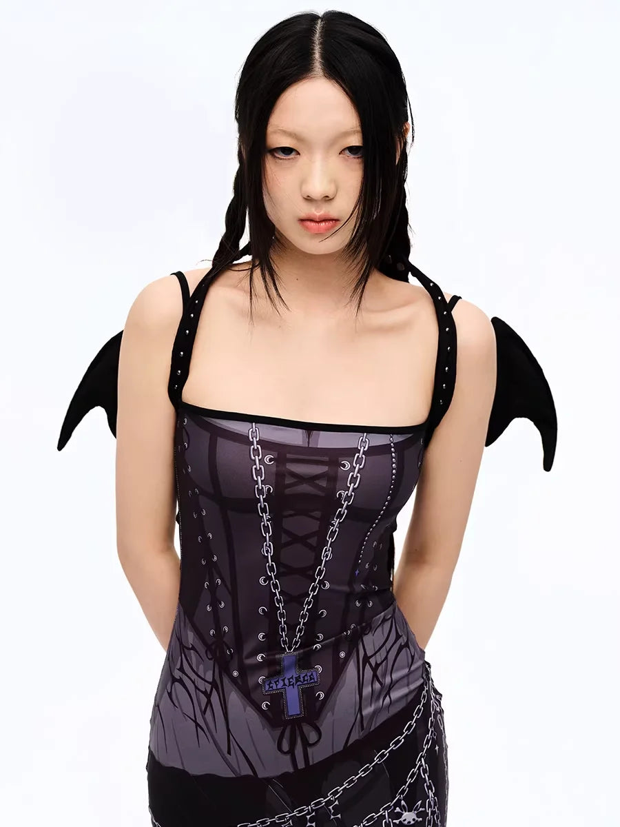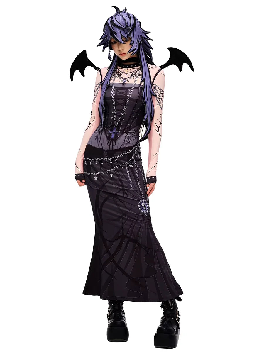 CFIERCE Gothic Spaghetti Strap Mermaid Dress