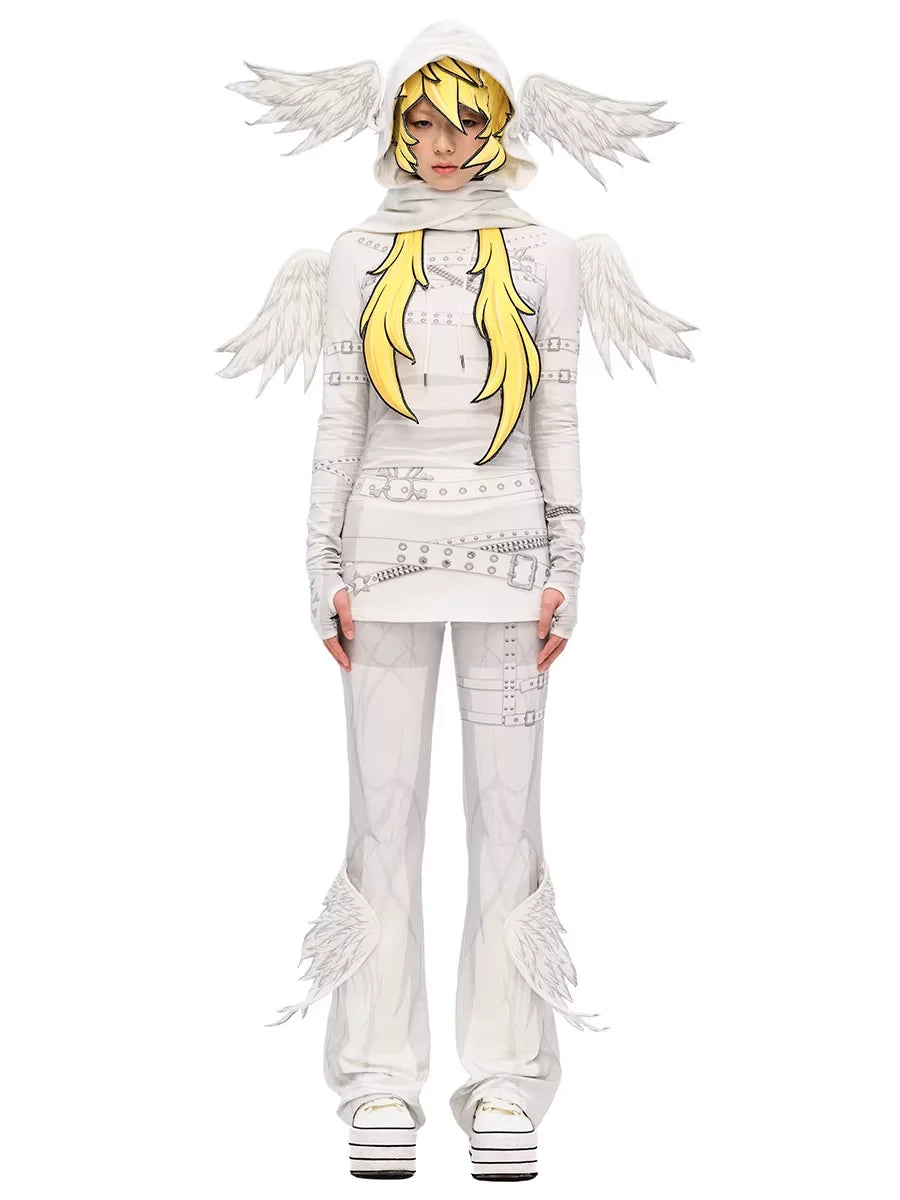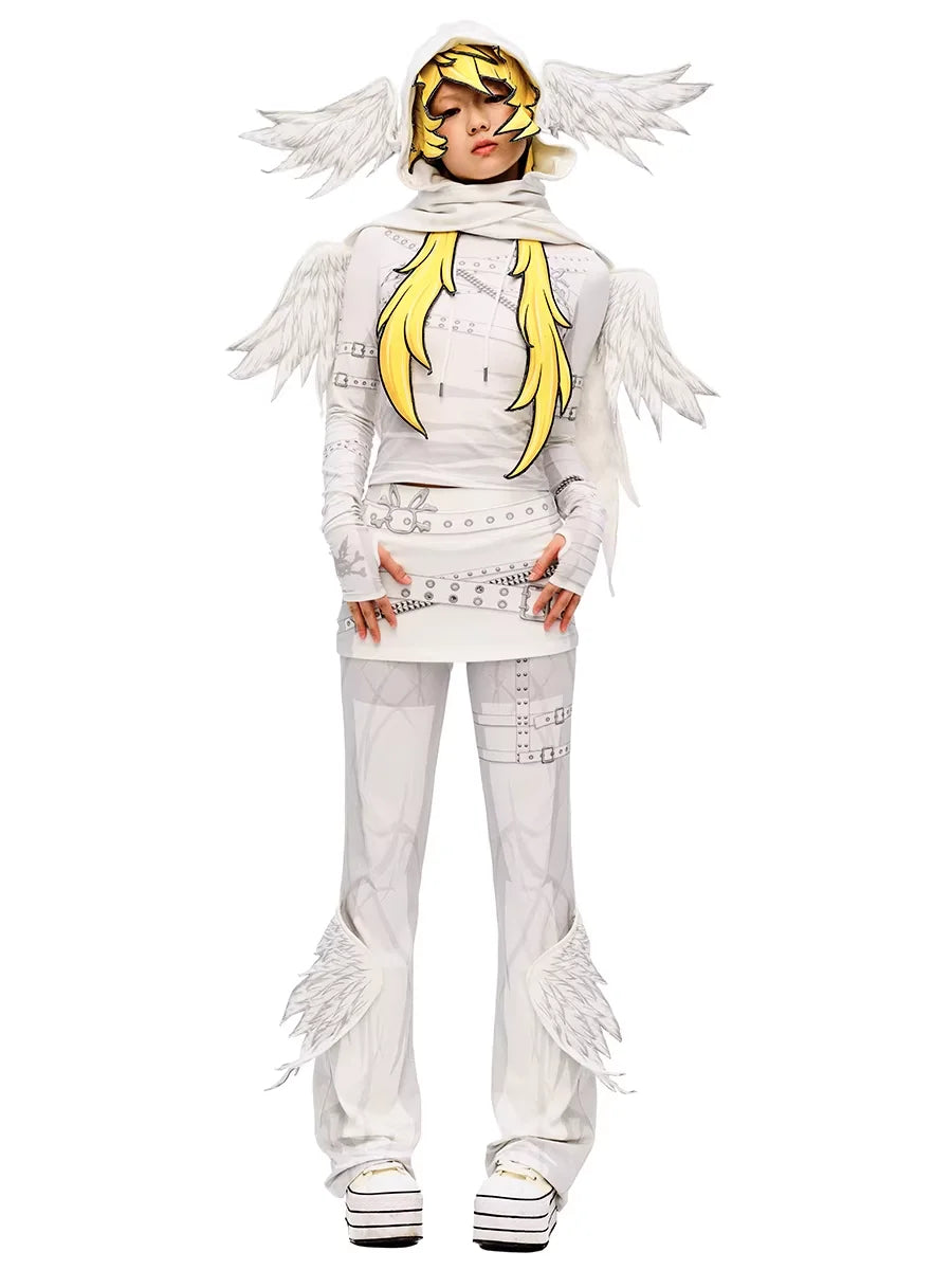 CFIERCE Angel-Inspired Hoodie and Wide-Leg Pants Set