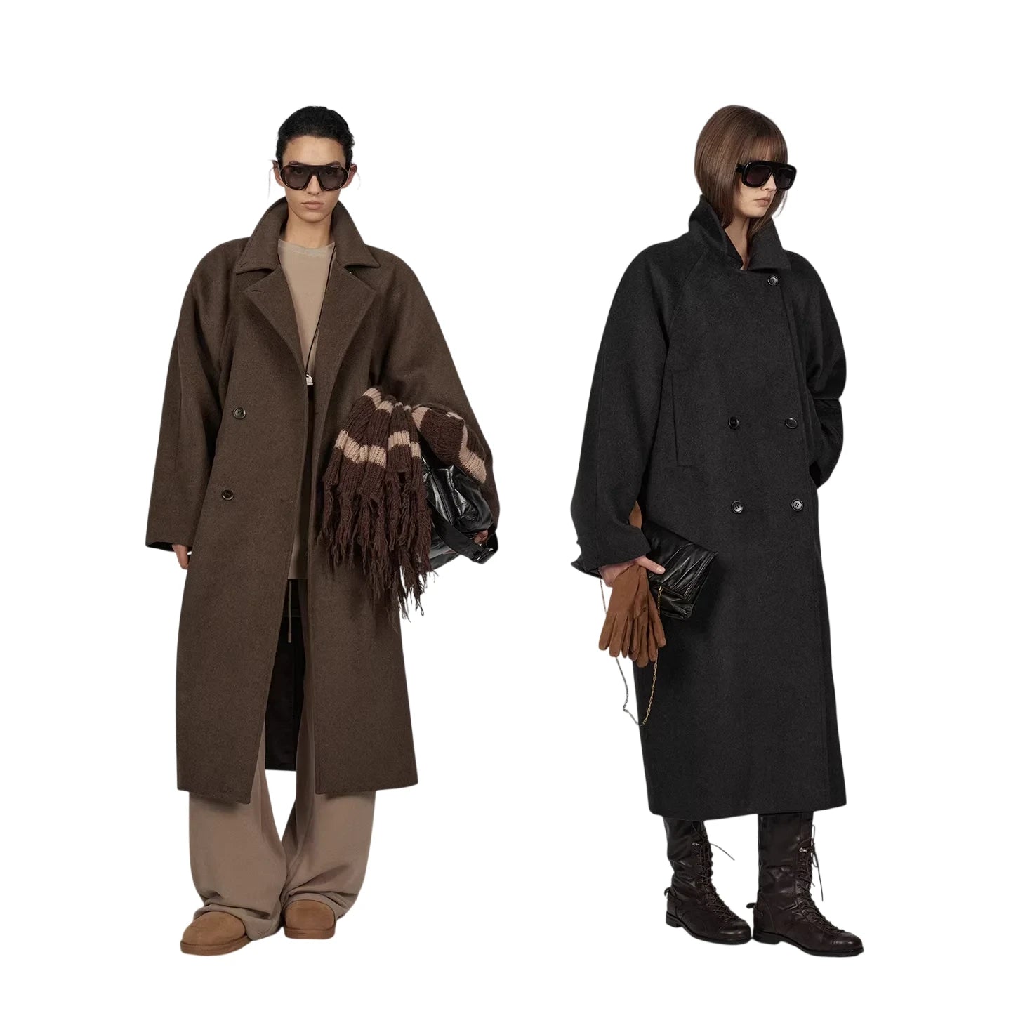 Elevate your winter wardrobe with this chic oversized wool coat, designed with a minimalist aesthetic. Featuring wide lapels, voluminous raglan sleeves, and a classic mid-length cut, this coat offers both warmth and sophistication. Ideal for layering, it pairs effortlessly with a variety of outfits for a stylish, cozy look.