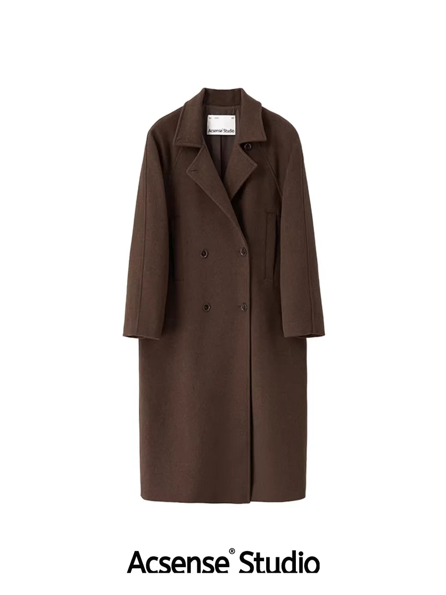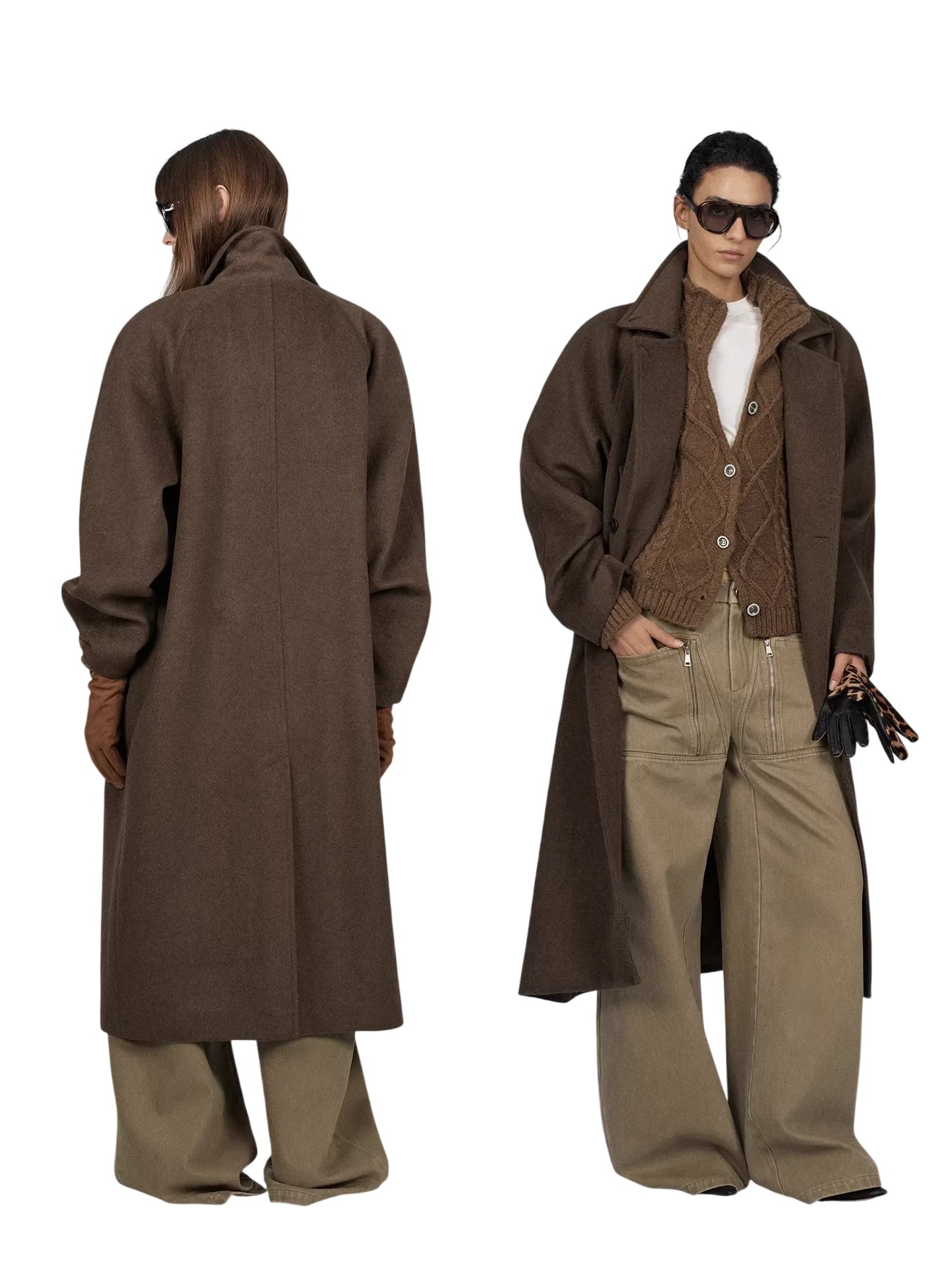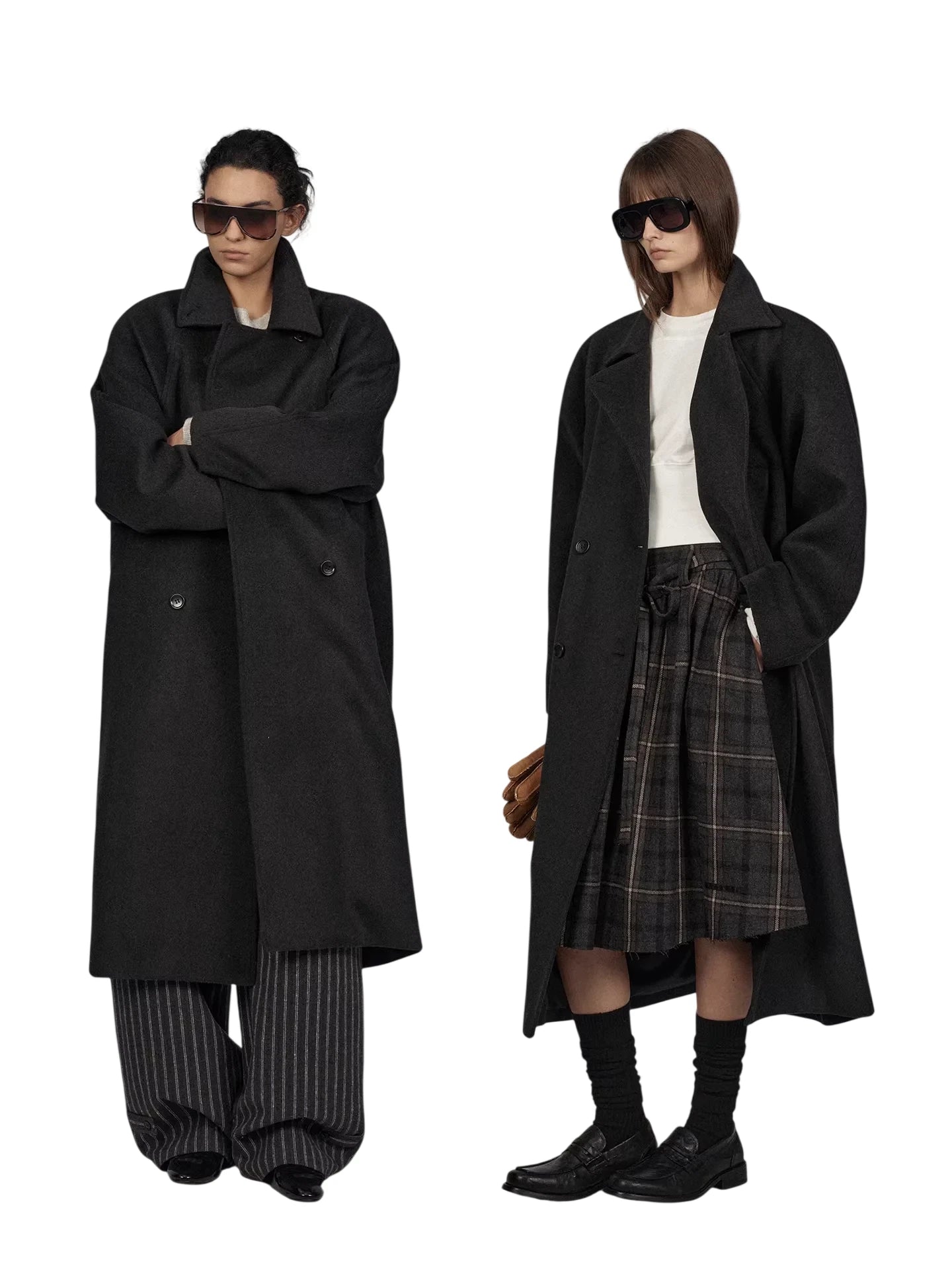 ACSENSE STUDIO Oversized Wool Coat with Lapel and Raglan Sleeves