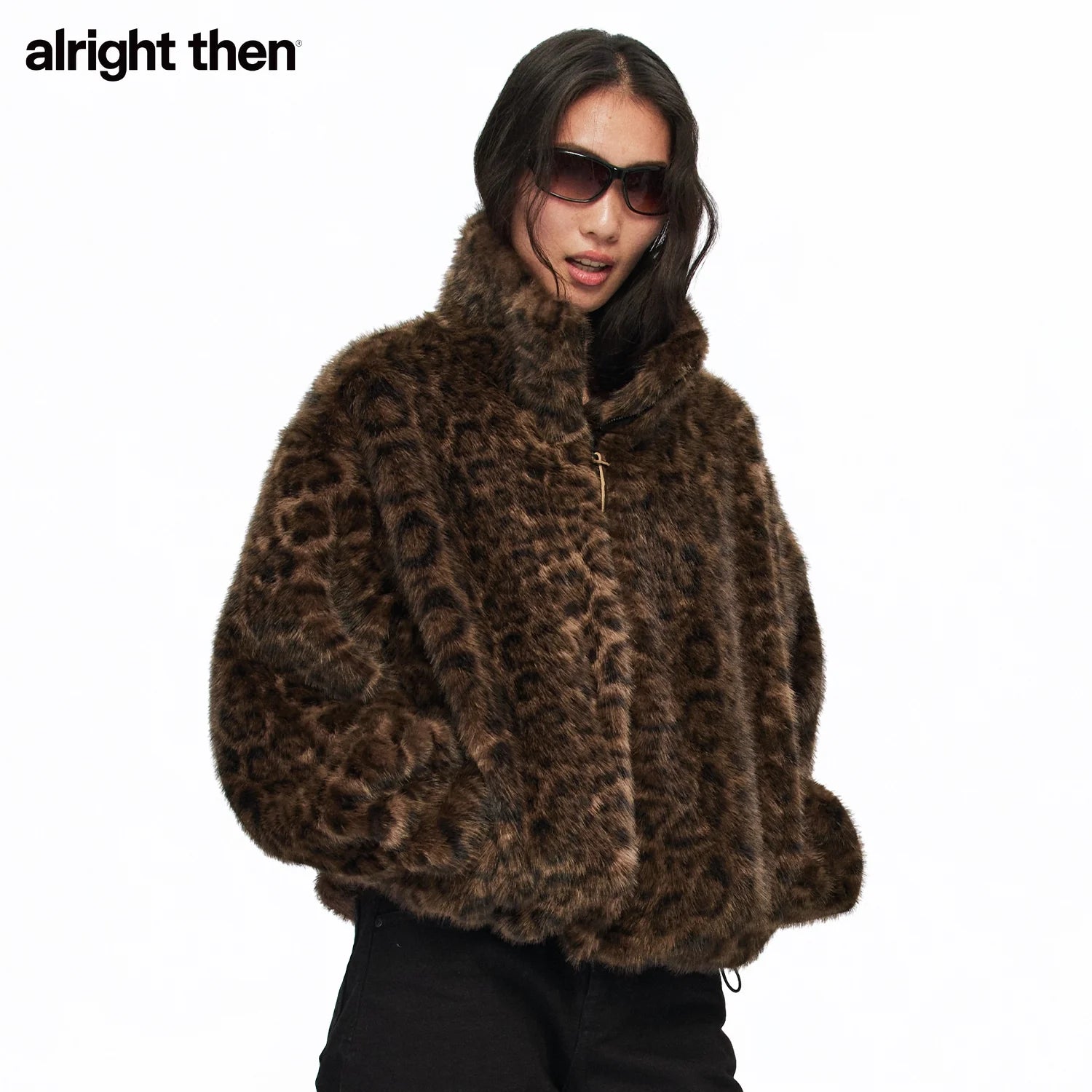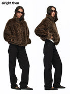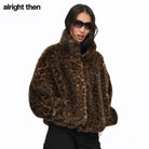 alright then Leopard Print Faux Fur Oversized Coat with Stand Collar