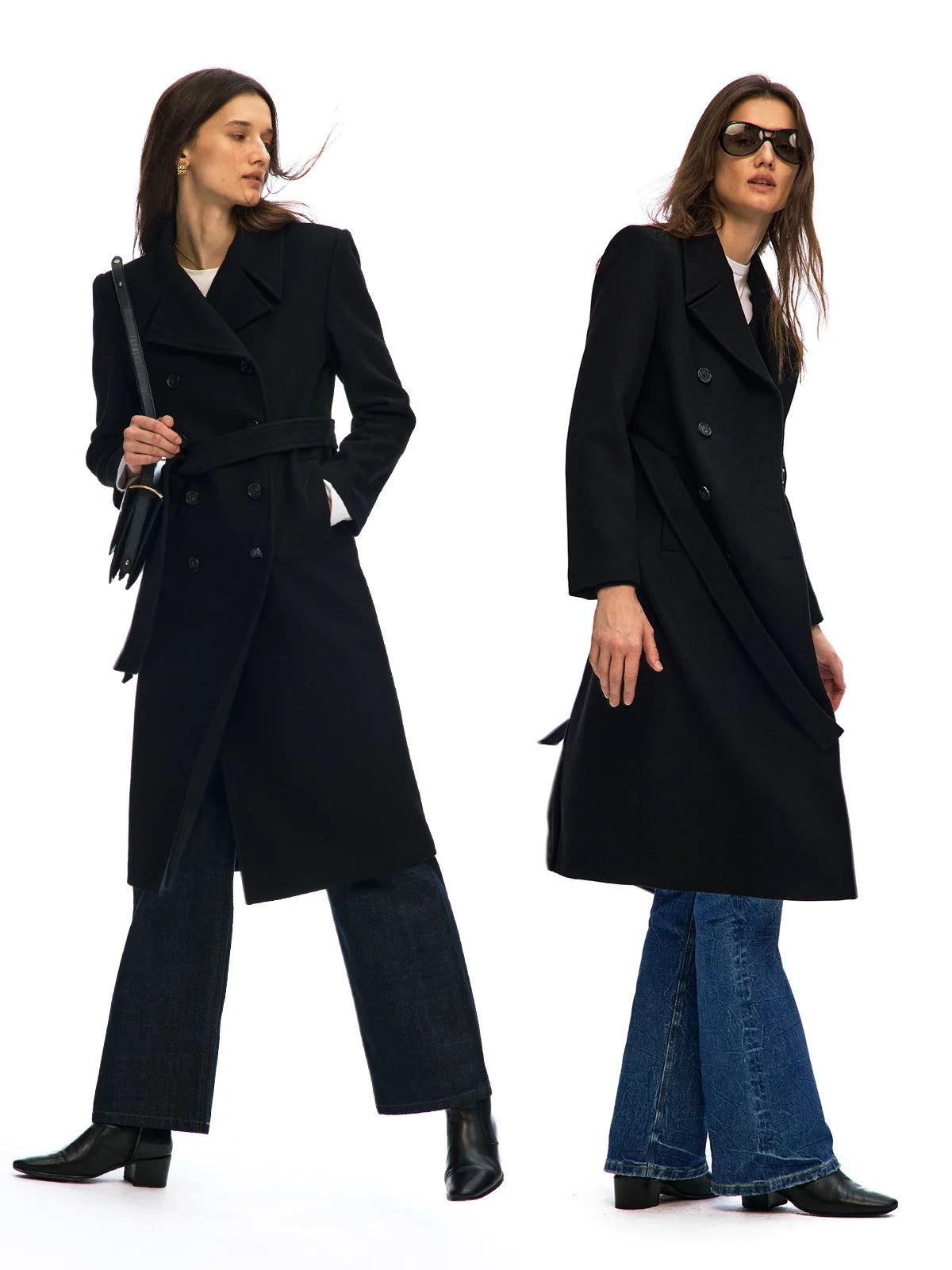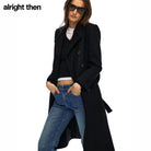alright then Women's Wool Double-Breasted Long Coat with Large Lapel