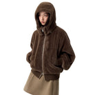 Stay warm and stylish in this eco-friendly faux fur coat designed for women. Featuring a rich chocolate brown color, the coat offers a plush, oversized silhouette complemented by ribbed cuffs and hem for a structured look. A detachable hood and full front zipper add functionality, while cozy side pockets provide added comfort and convenience. Perfect for cold-weather layering, this coat combines sustainability with contemporary style.