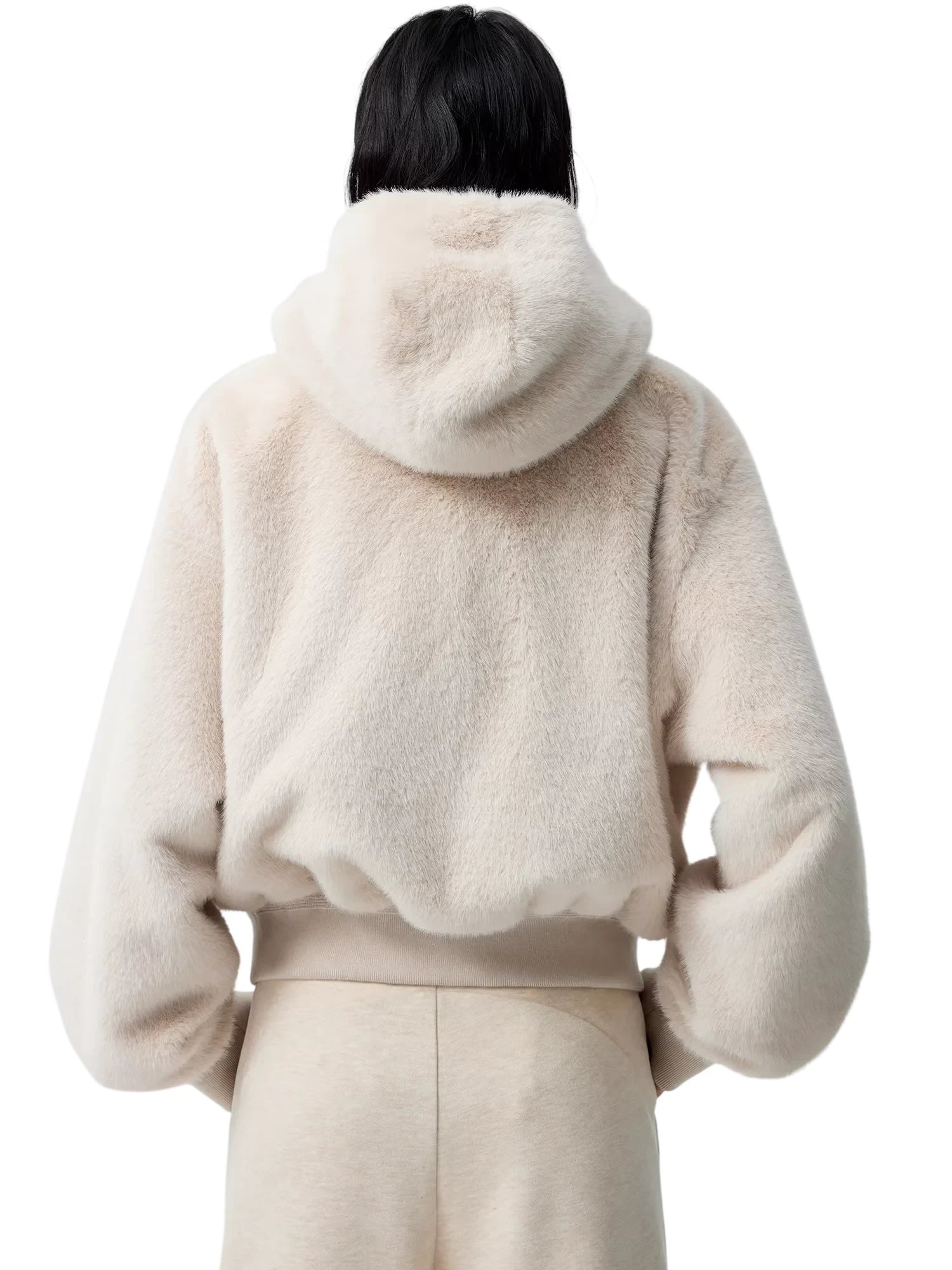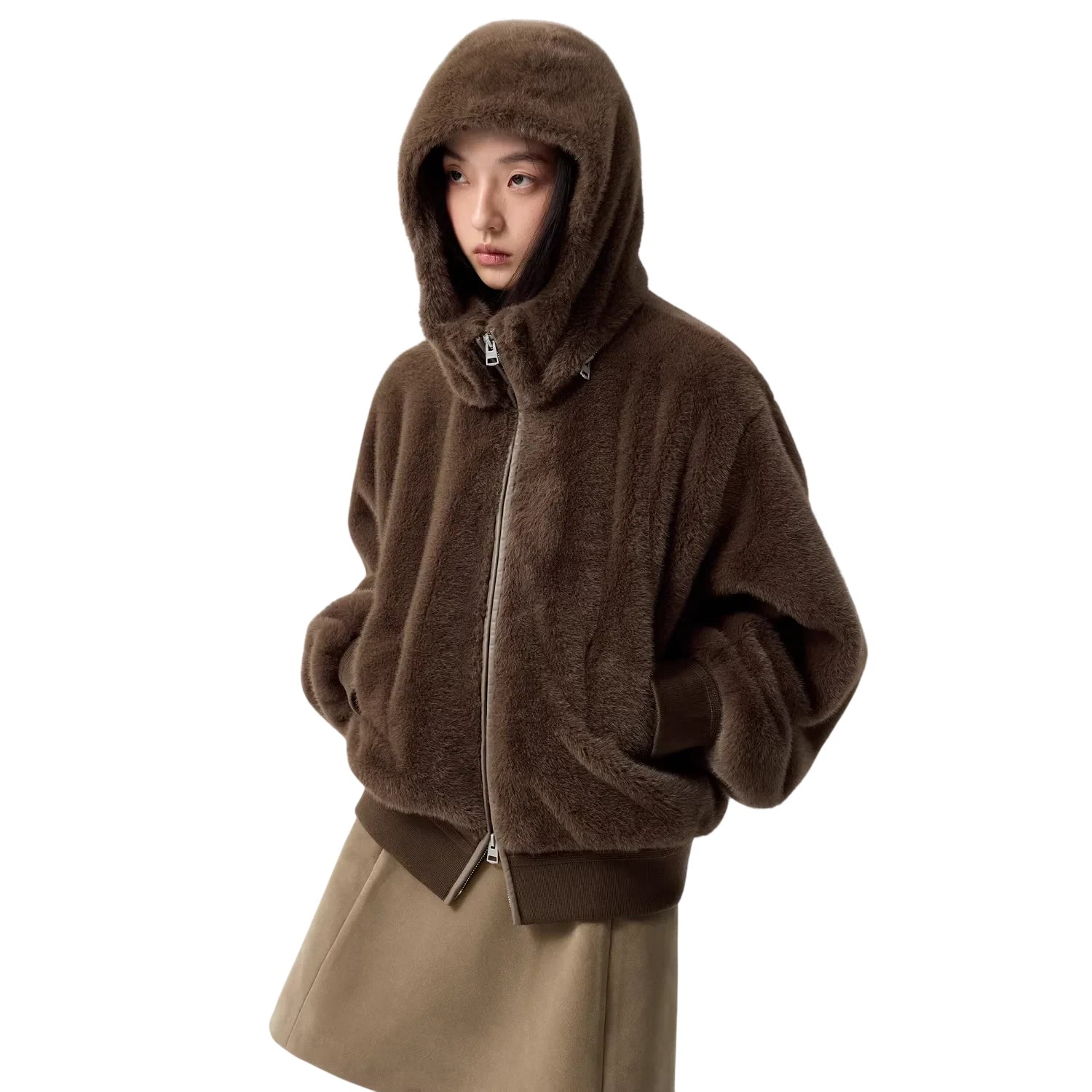 Simple Project Eco-Friendly Faux Fur Hooded Coat with Detachable Hood
