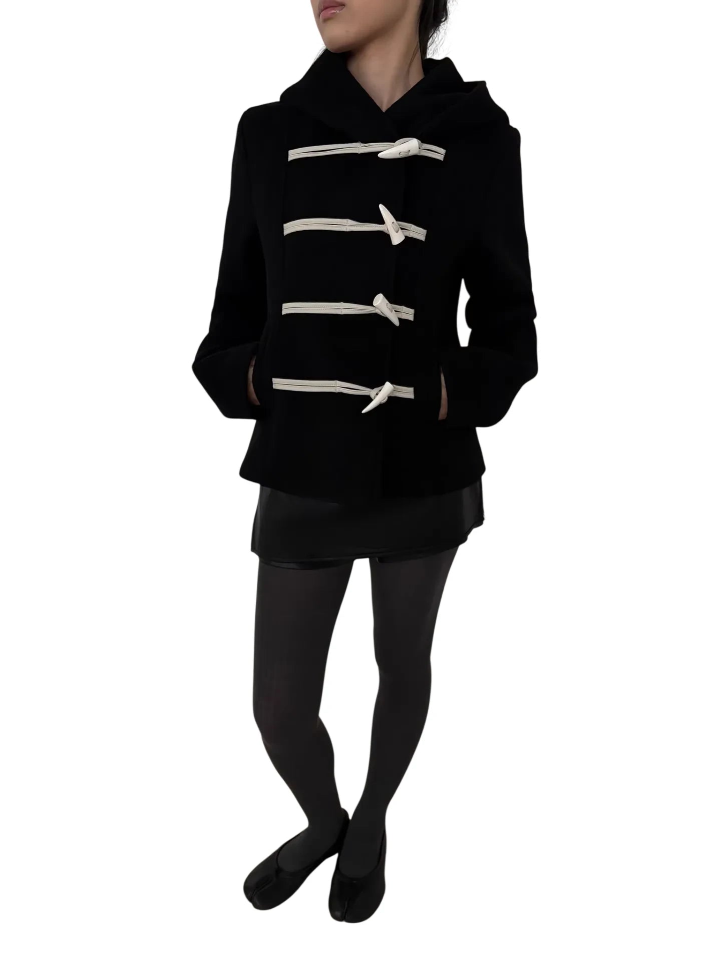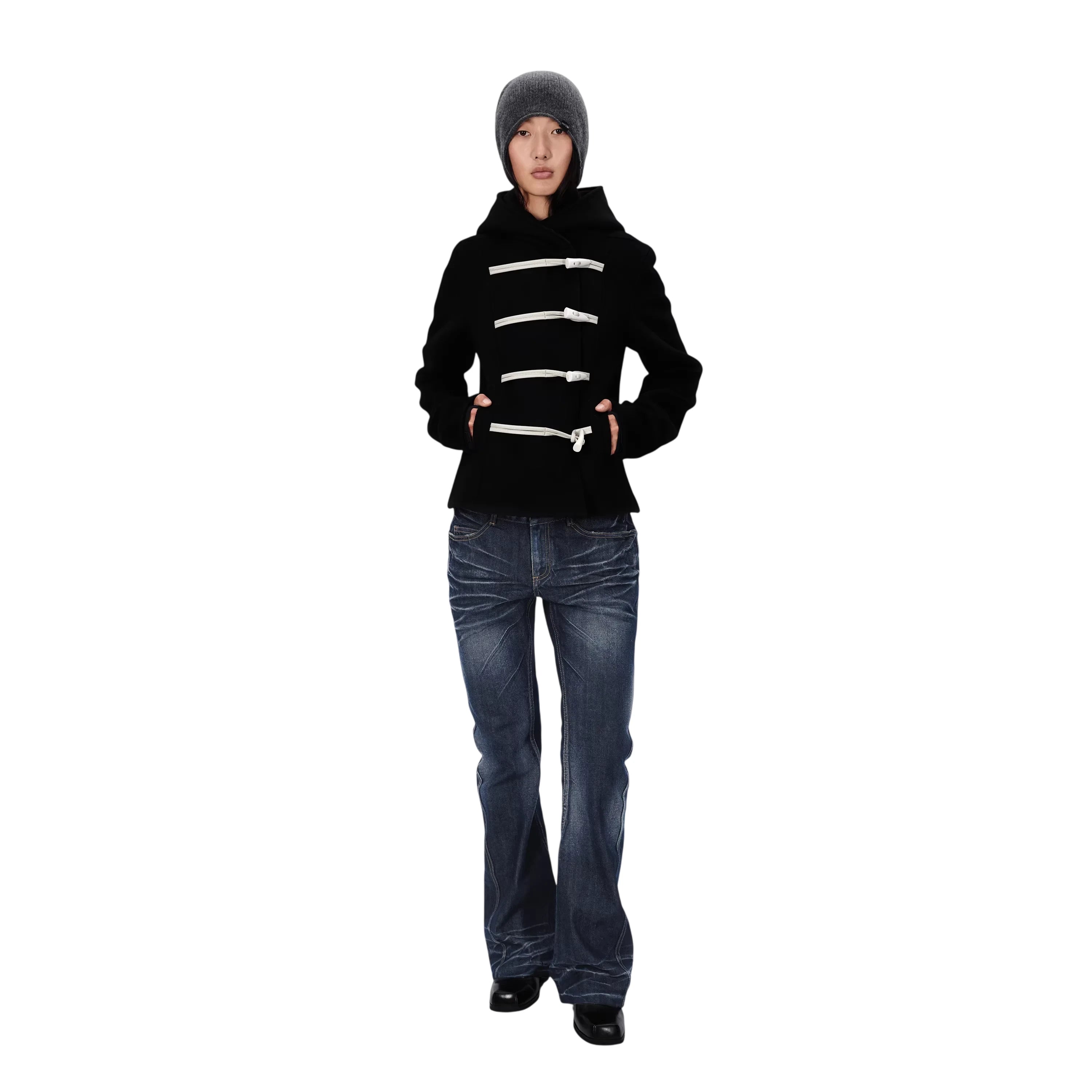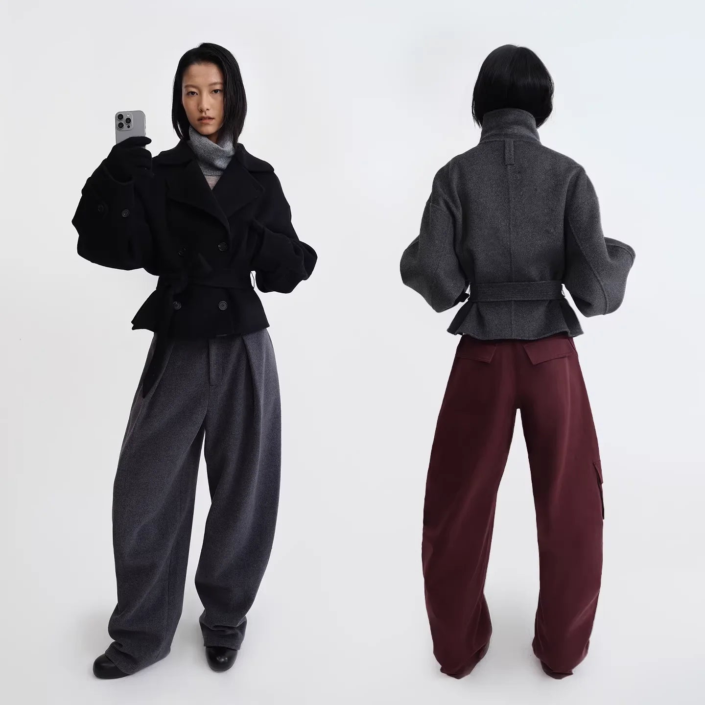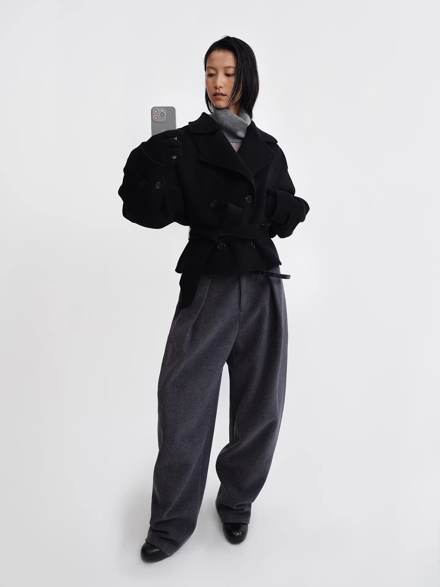 RARELY ALIKE Double-Breasted Wool Blend Belted Coat - Black and Grey