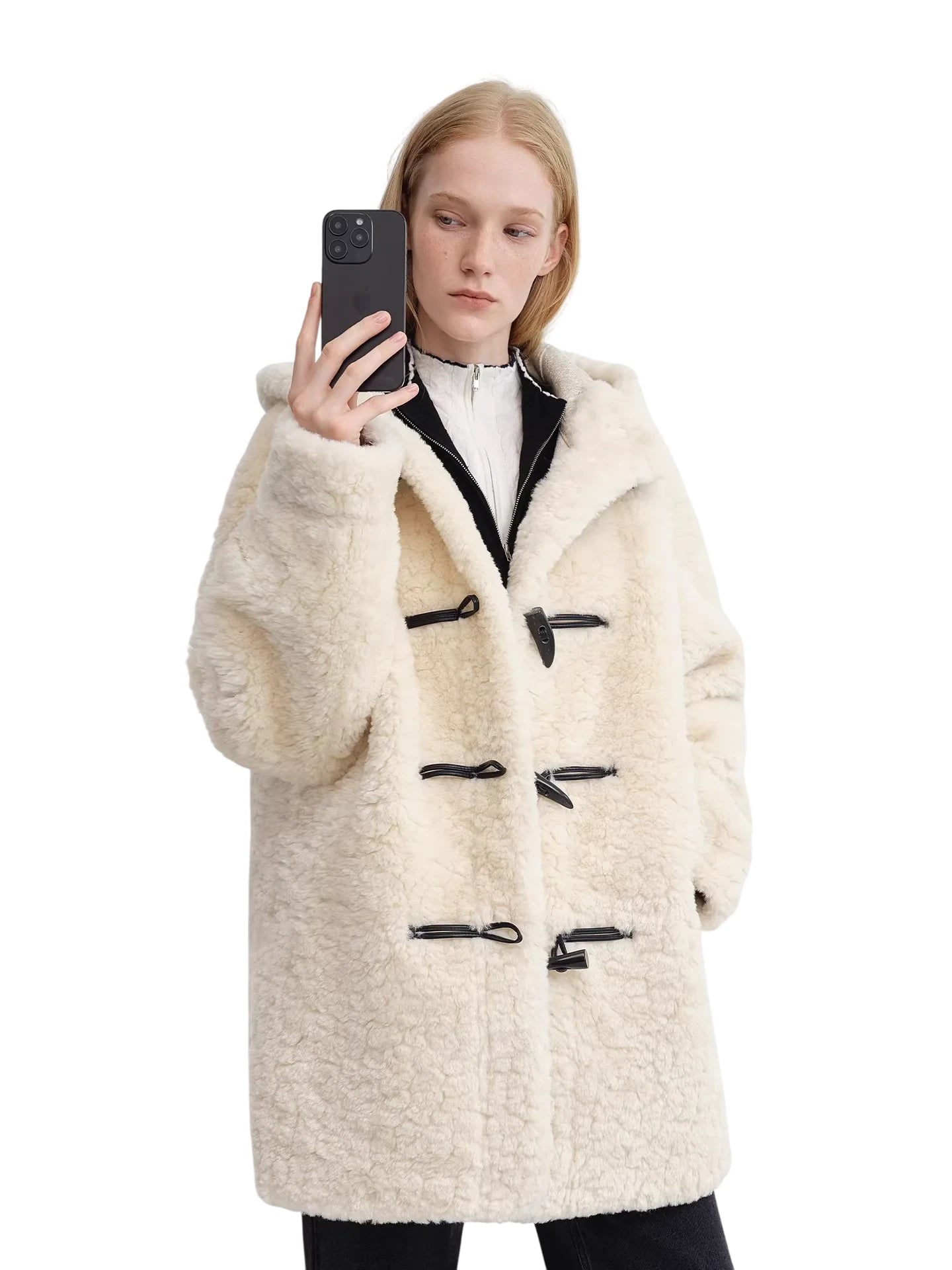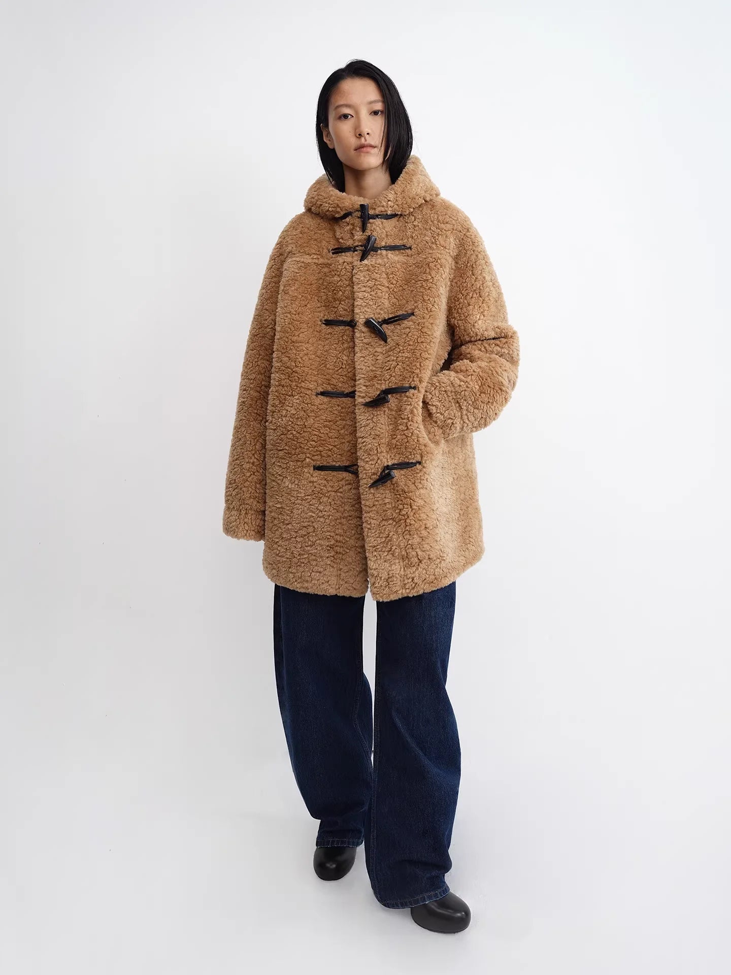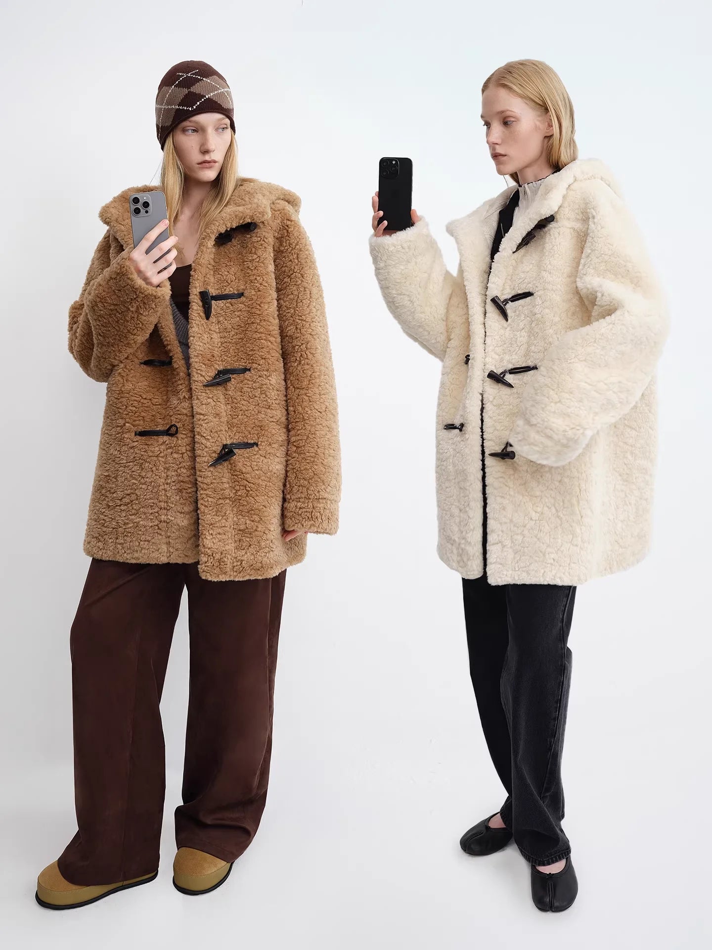 RARELY ALIKE Hooded Toggle Teddy Shearling Coat
