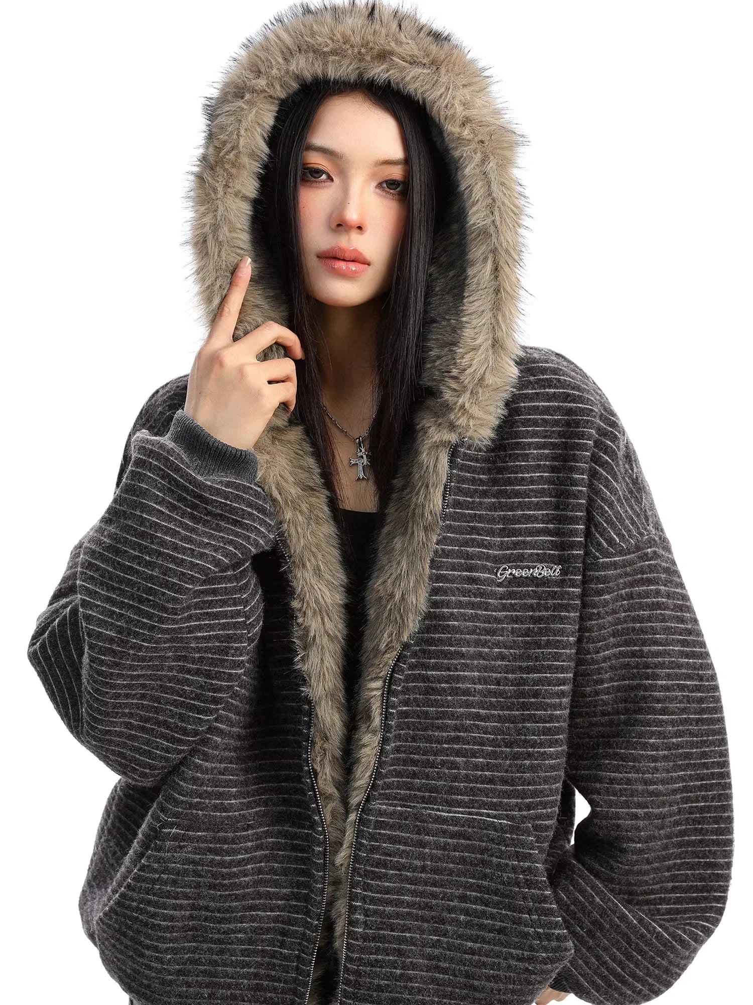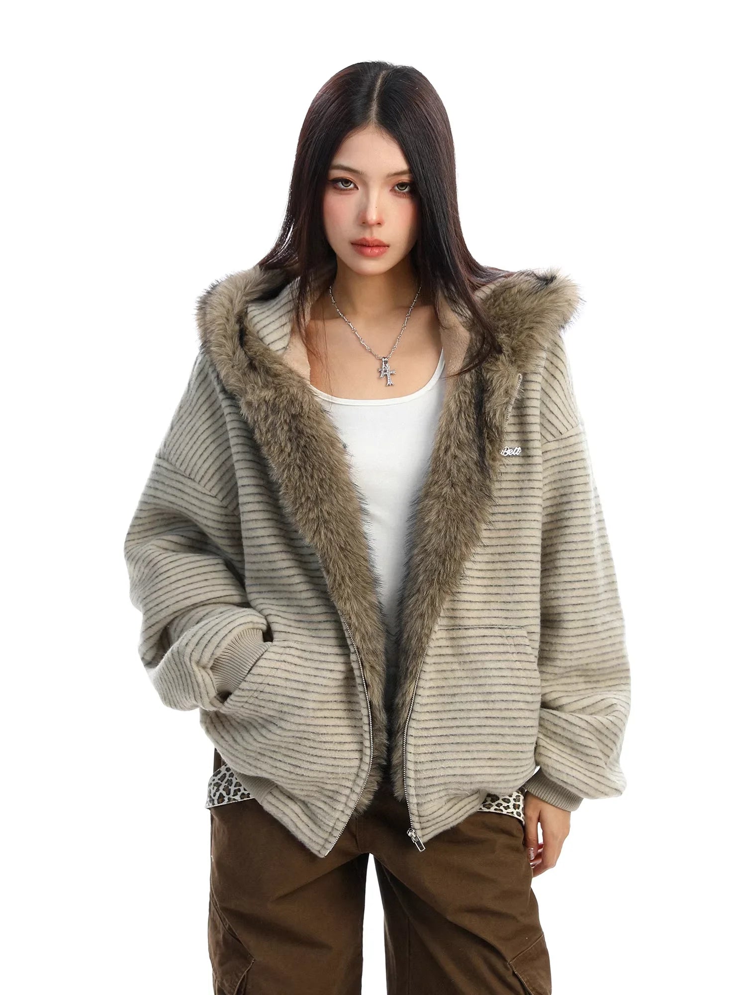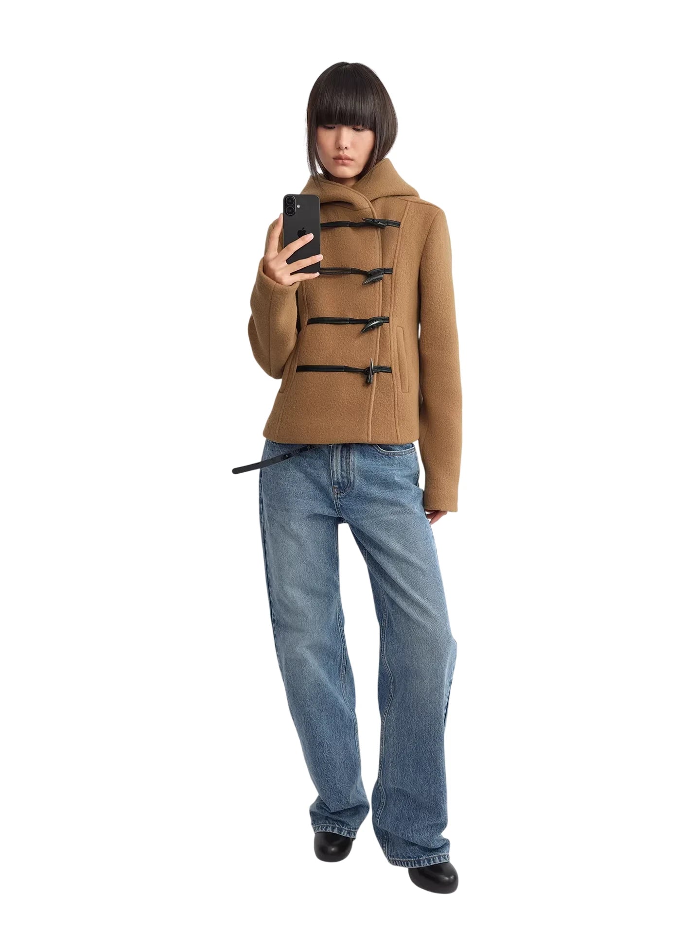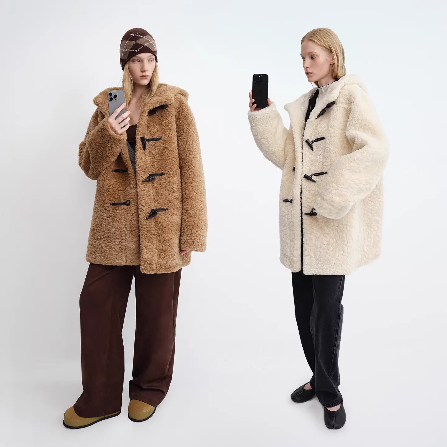 RARELY ALIKE Hooded Toggle Teddy Shearling Coat