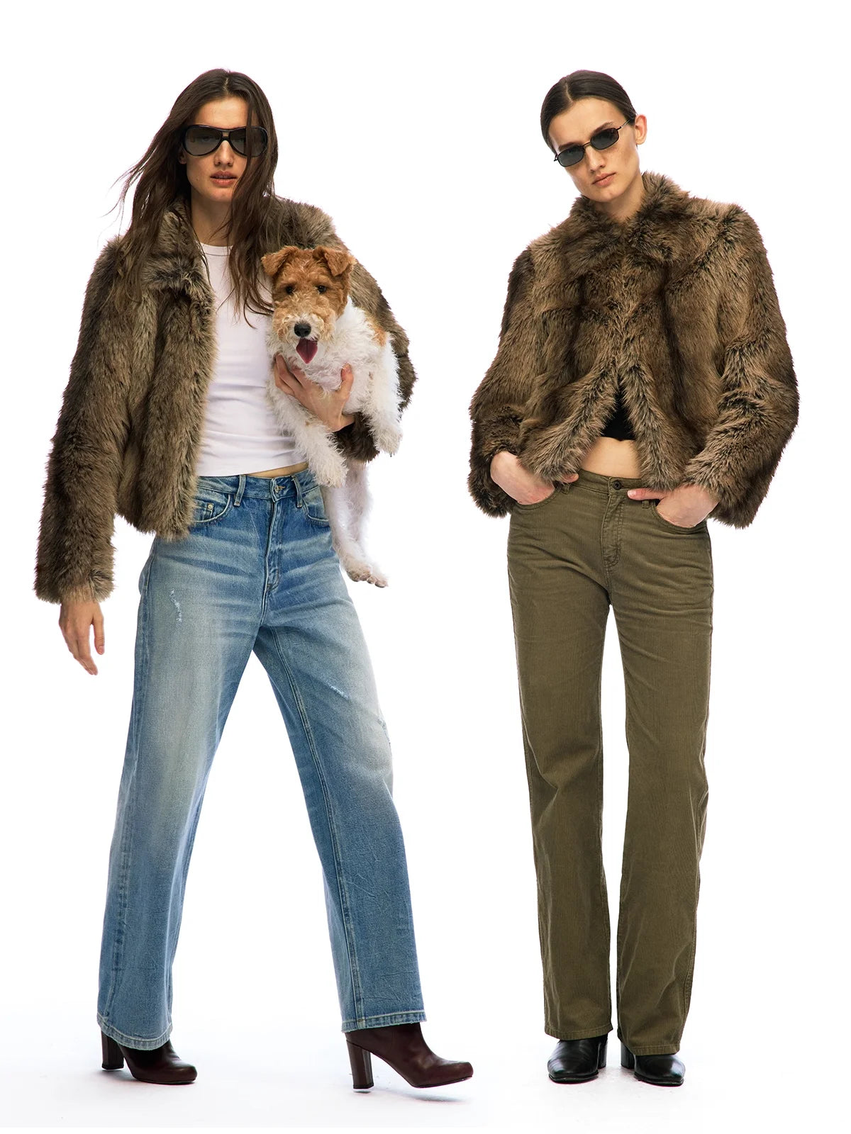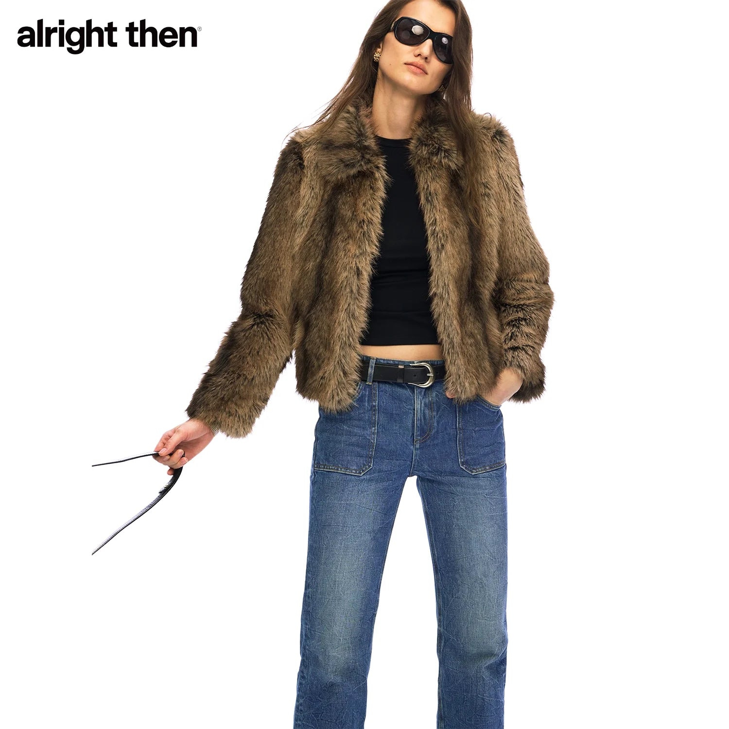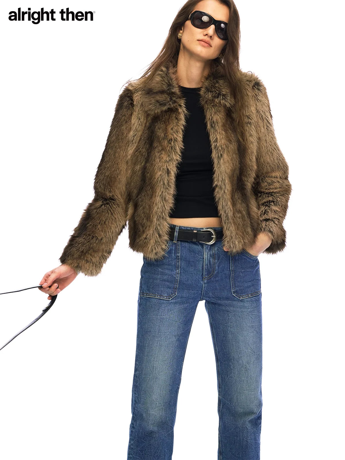 alright then Faux Fur Stand Collar Mid-Length Coat