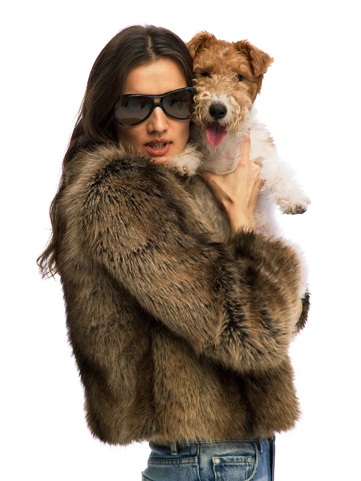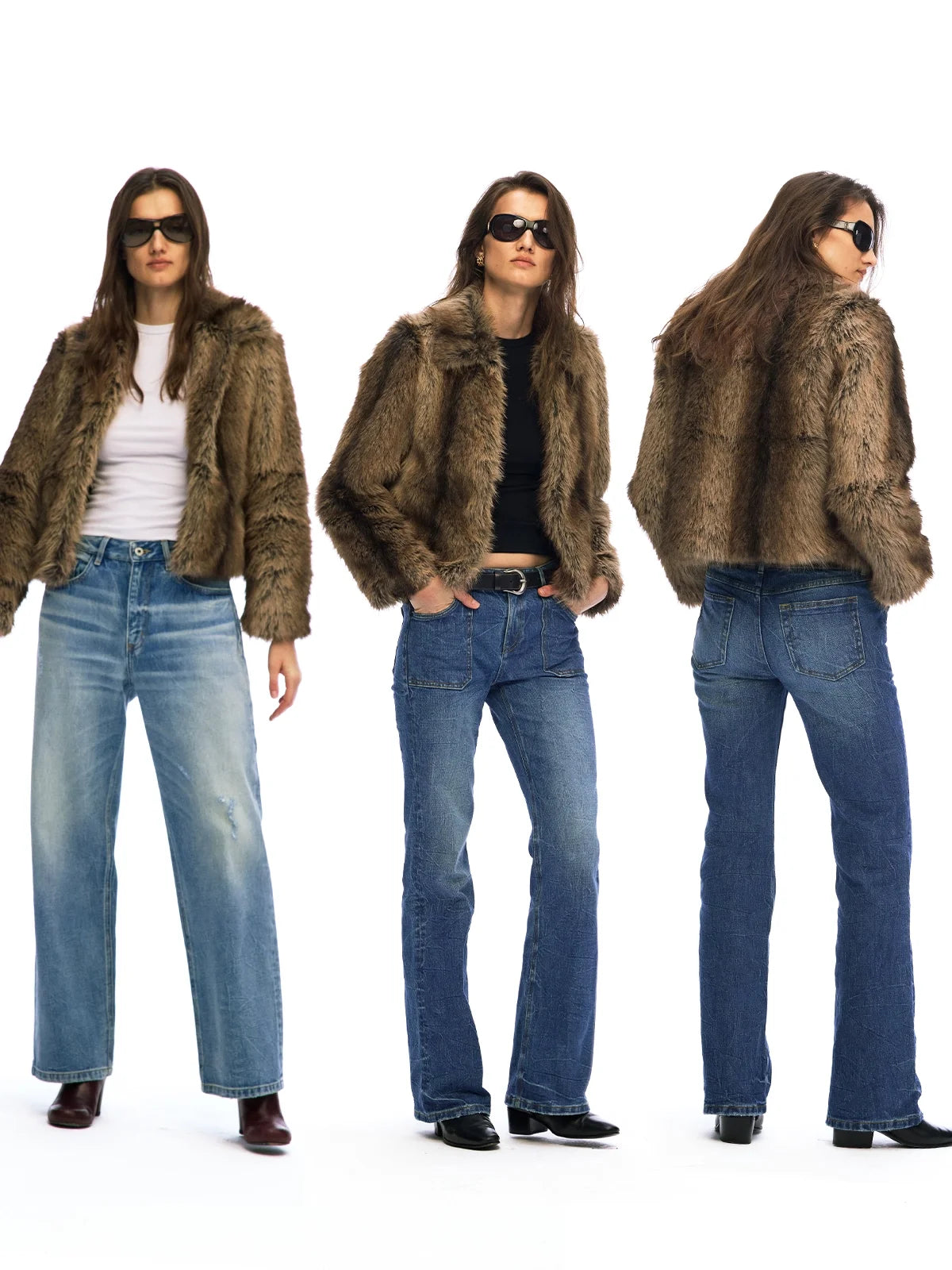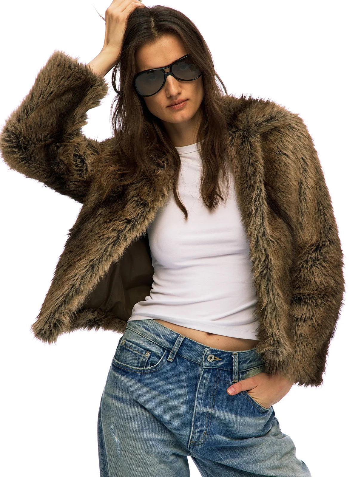 alright then Faux Fur Stand Collar Mid-Length Coat