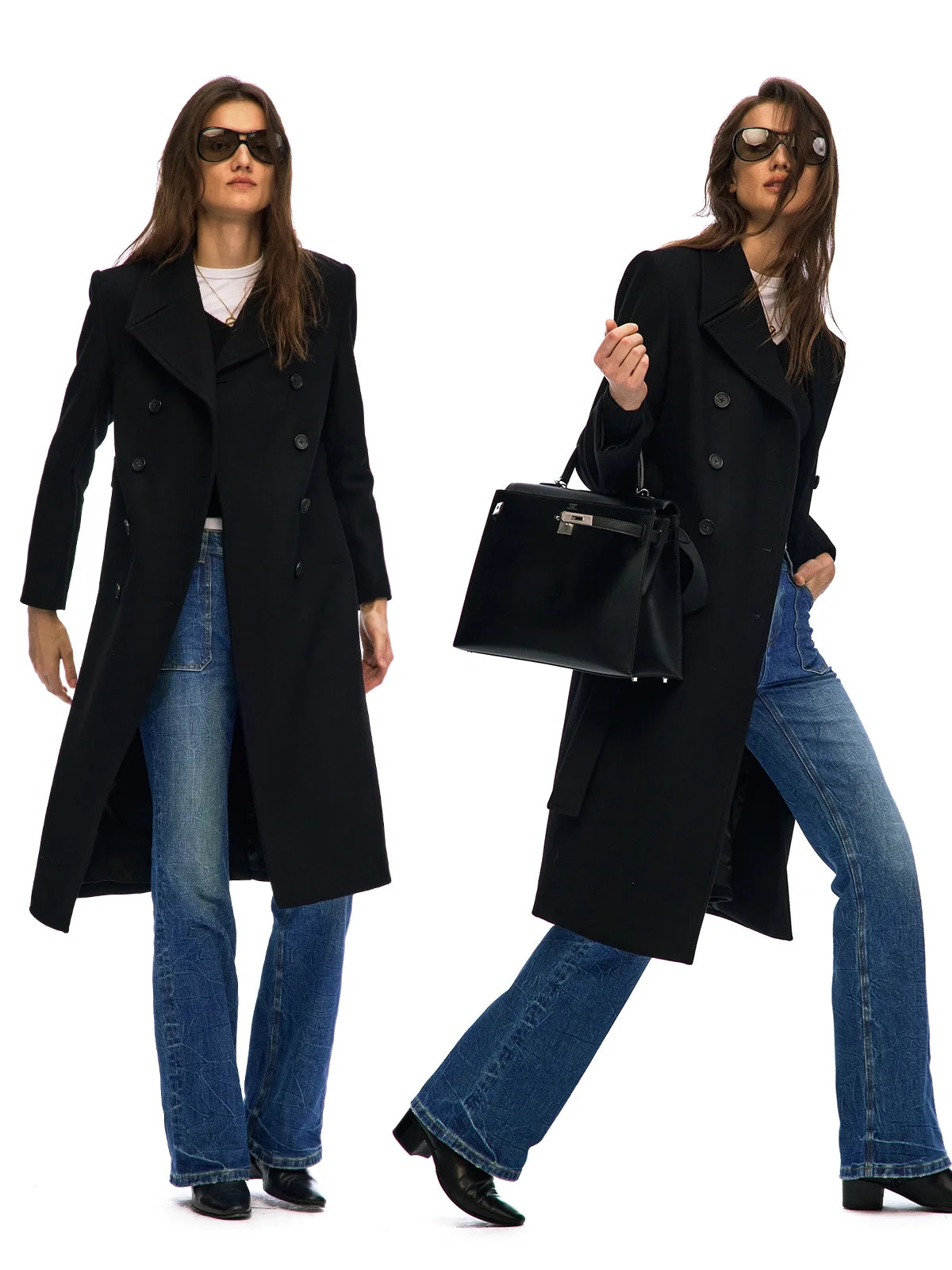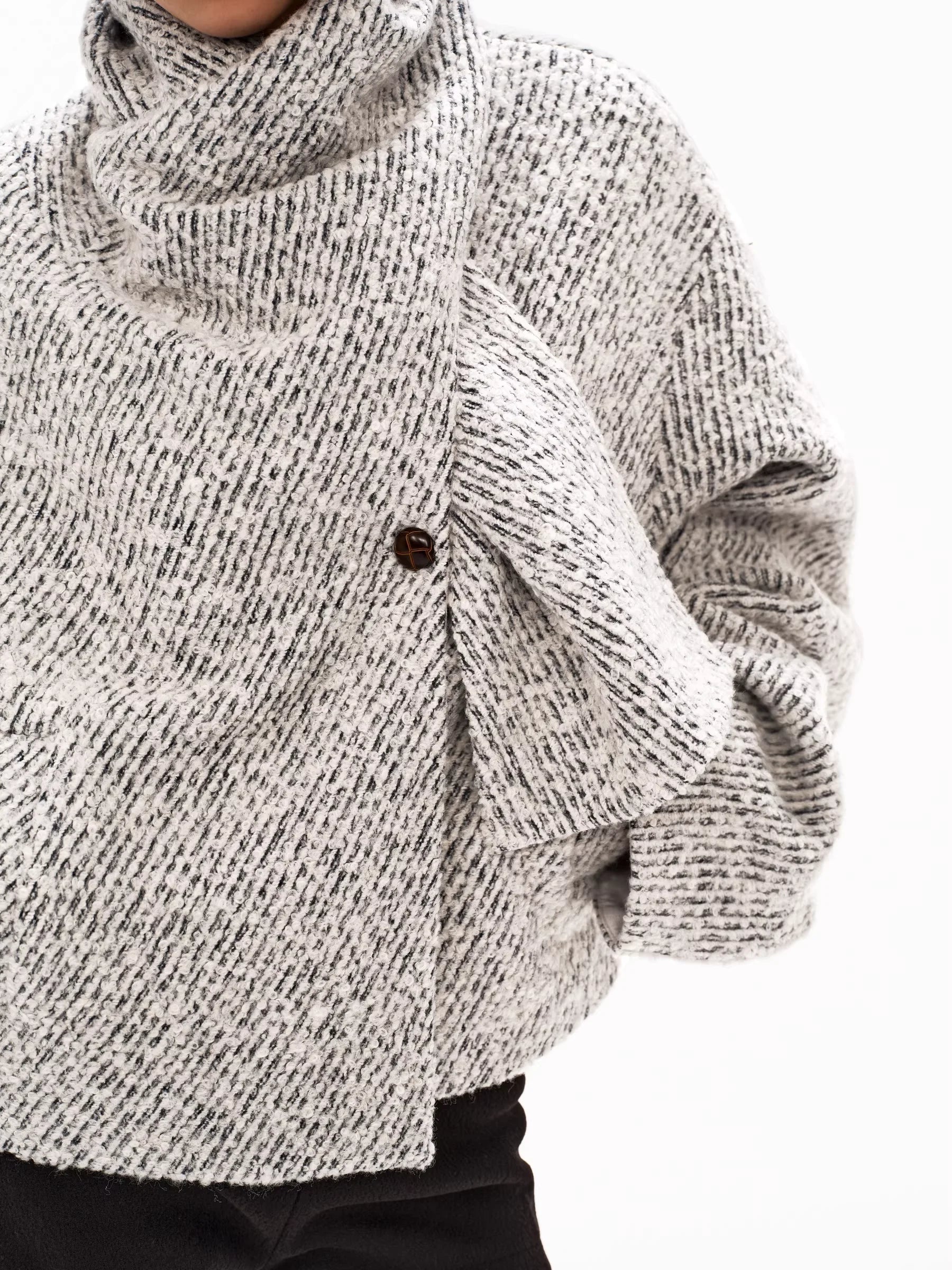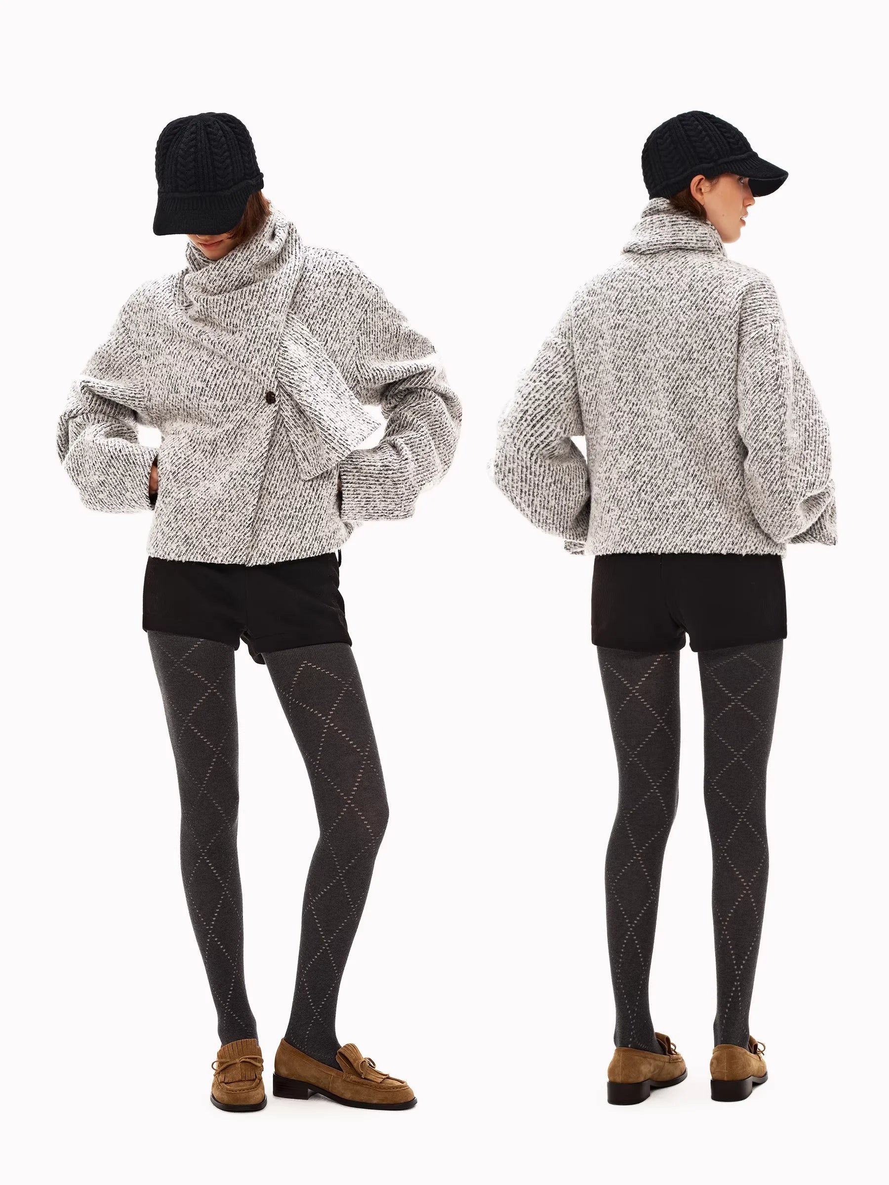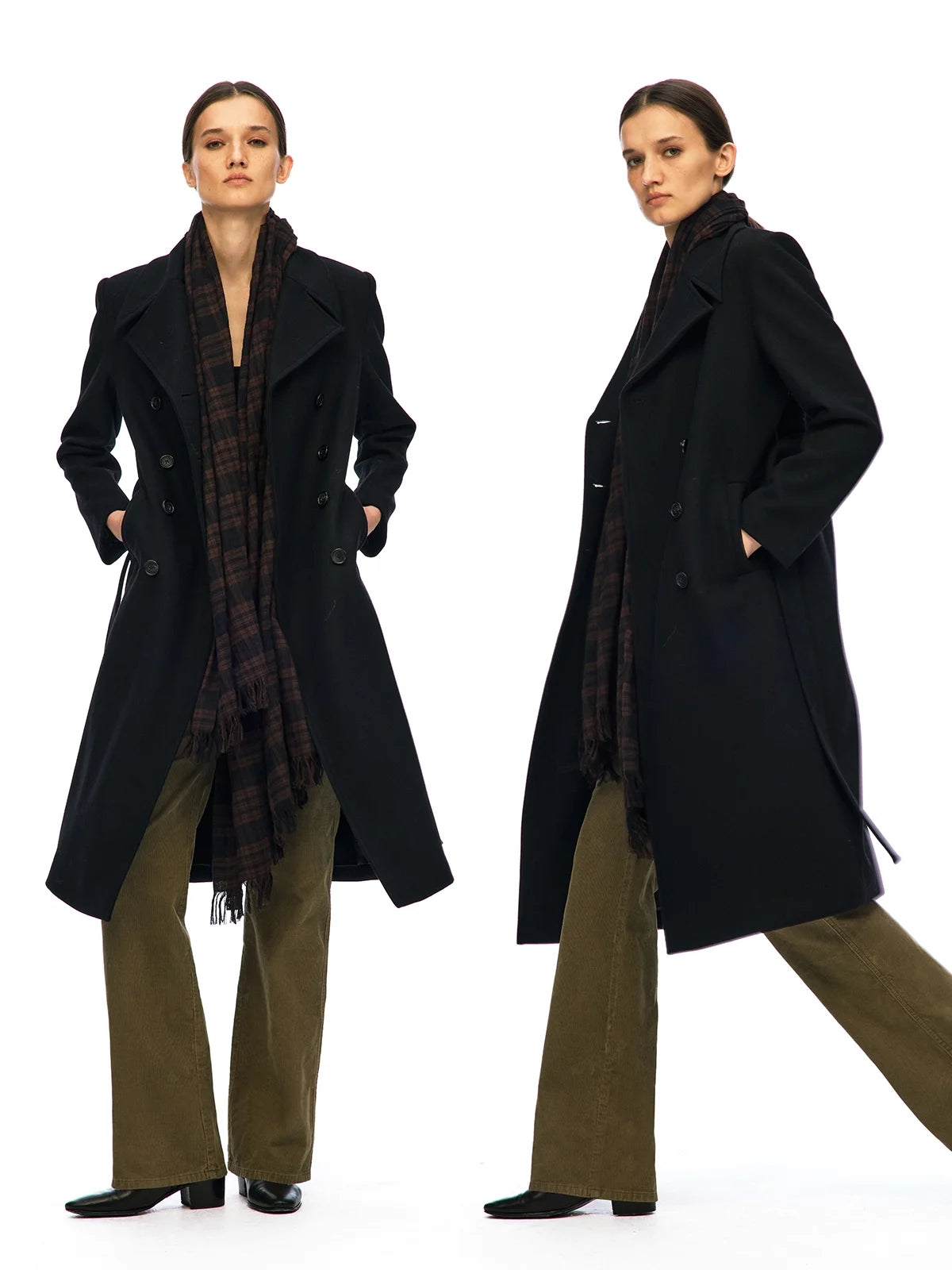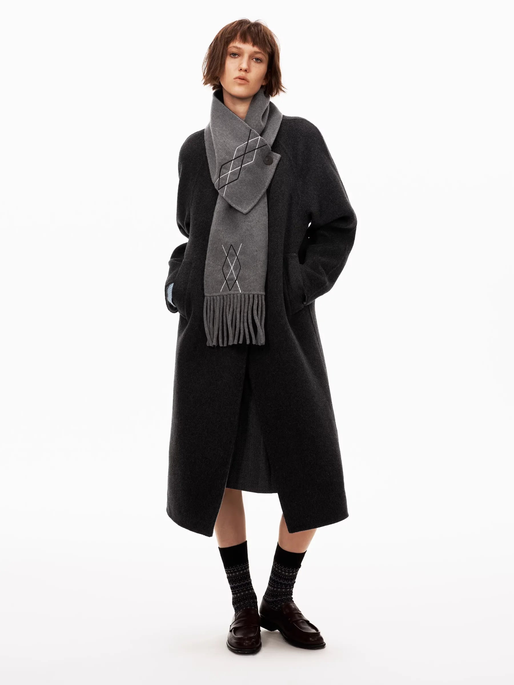 PUKI Wool Blend Diamond Pattern Scarf Lapel Long Coat
