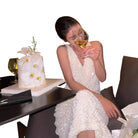 1S STUDIO Velvet Sequin Camisole Evening Dress in White