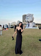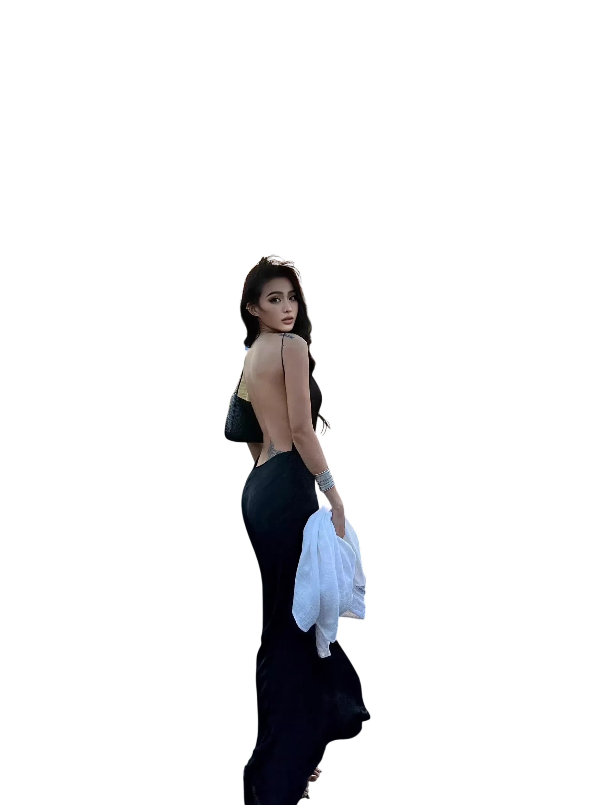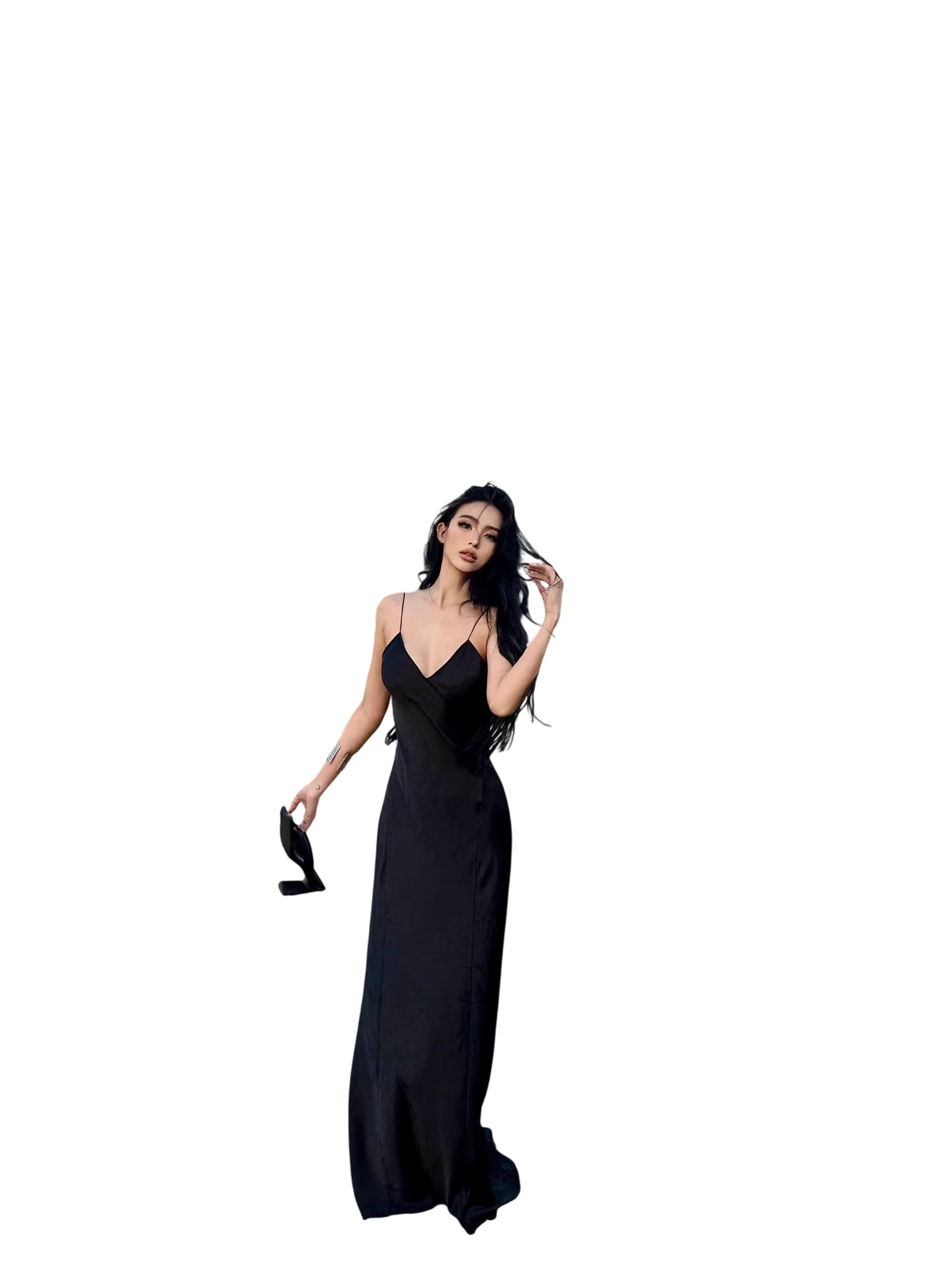 Turn heads in this elegant satin slip dress designed for evening events, parties, vacations, and beach outings. Crafted from smooth acetate satin, this form-fitting dress features delicate spaghetti straps and a daring open back, offering a sophisticated yet bold silhouette. Its ankle-length design flows gracefully with every step, making it a versatile choice for both casual and formal settings.
