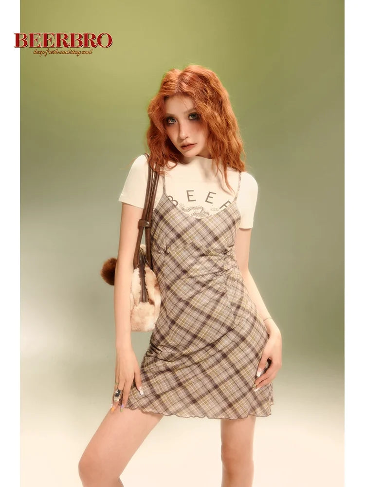 BeerBro Plaid Spaghetti Strap A-Line Mini Dress for Women