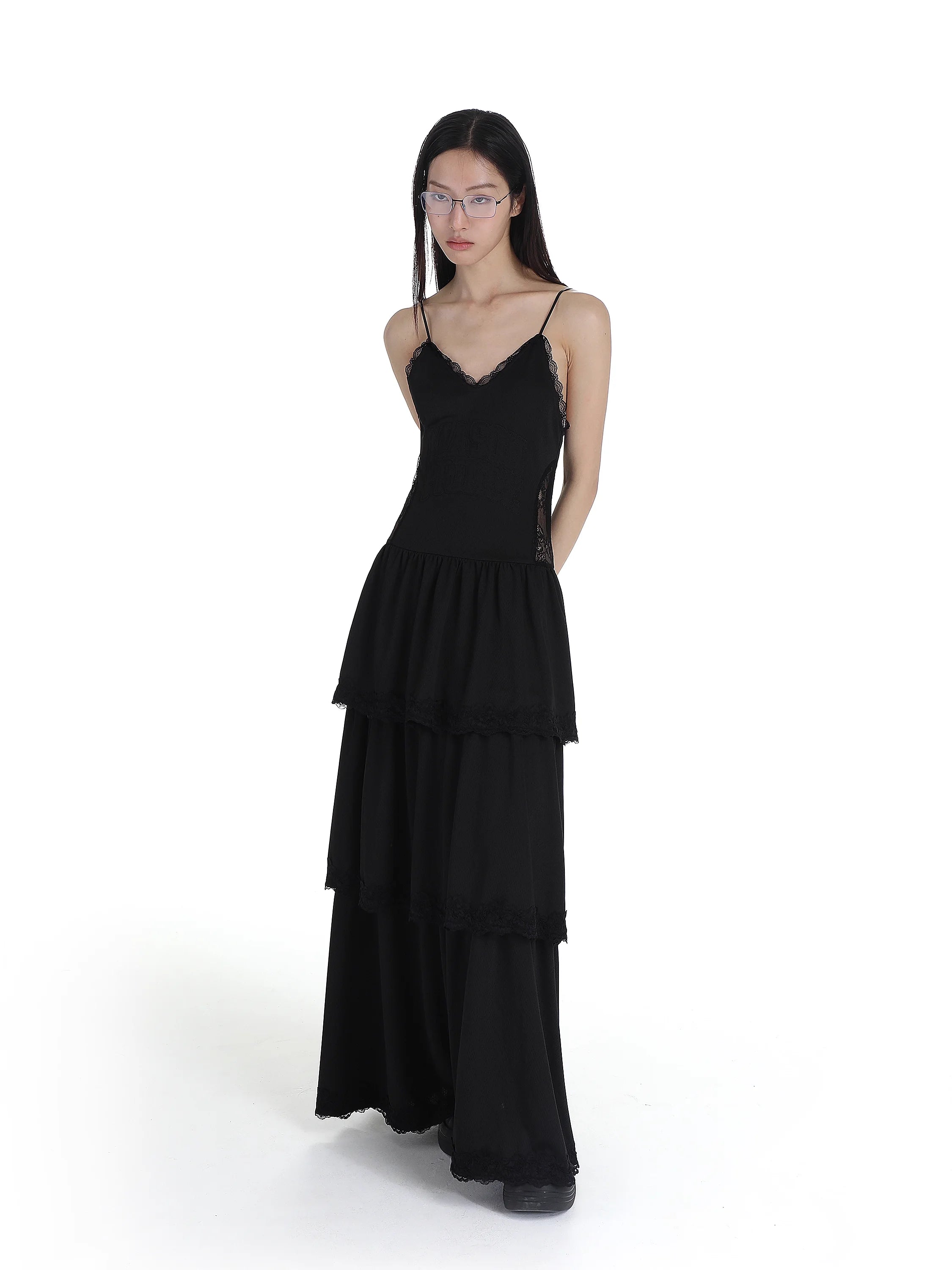 MASONPRINCE Lace Mesh Layered Spaghetti Strap Dress