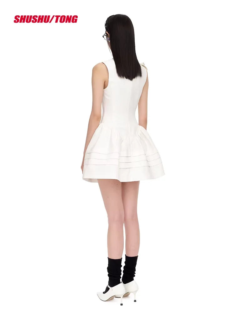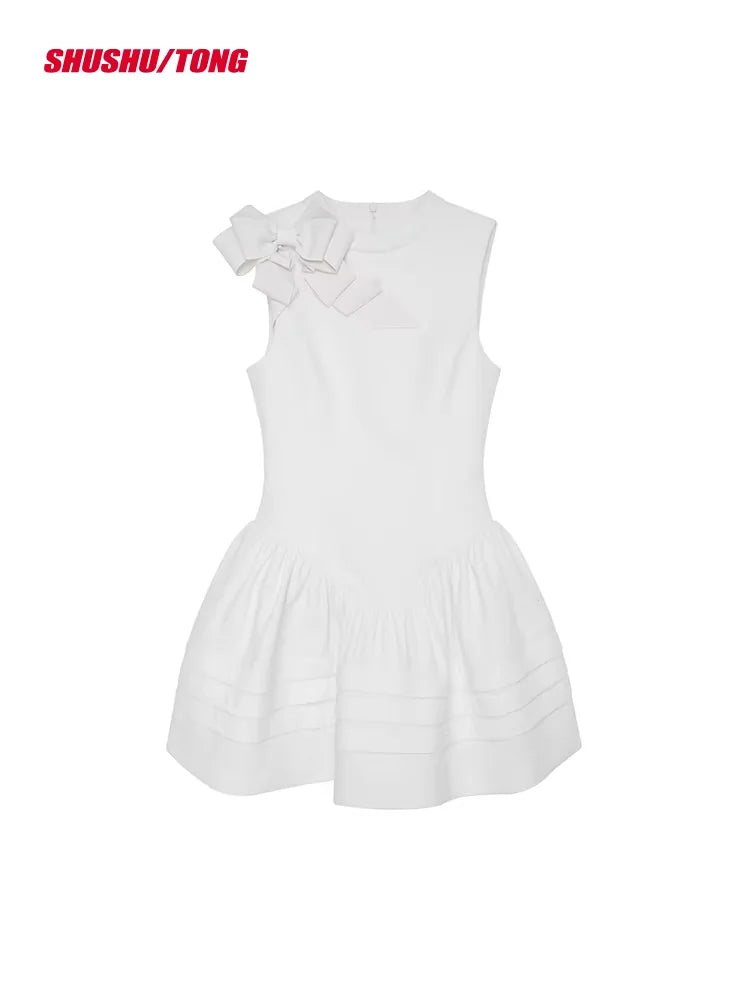 shushutong Elegant Winter Sleeveless Mini Dress with Shoulder Bow