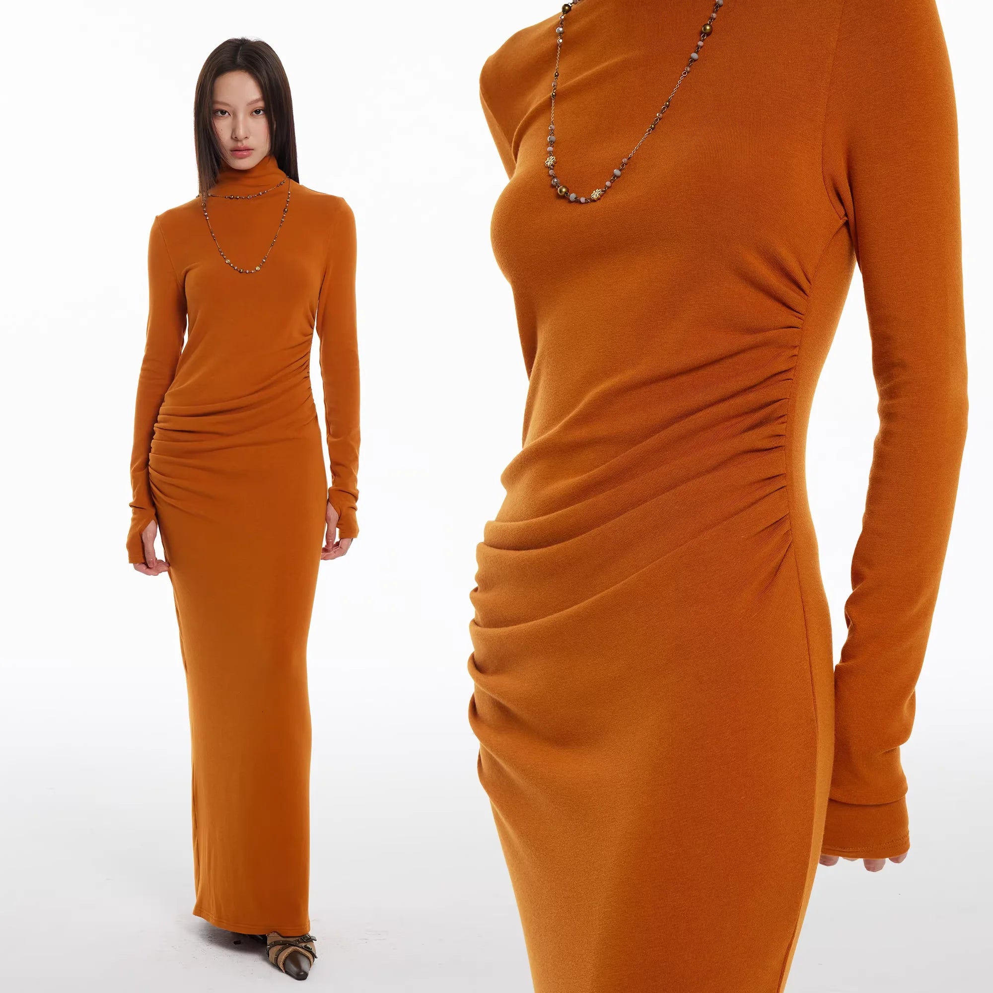 Elevate your seasonal wardrobe with this chic women's slim fit turtleneck dress, designed for both comfort and sophistication. Crafted in a smooth, stretchy fabric, this full-length bodycon dress features long sleeves and a mock neckline, offering warmth and elegance for autumn and winter wear.