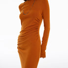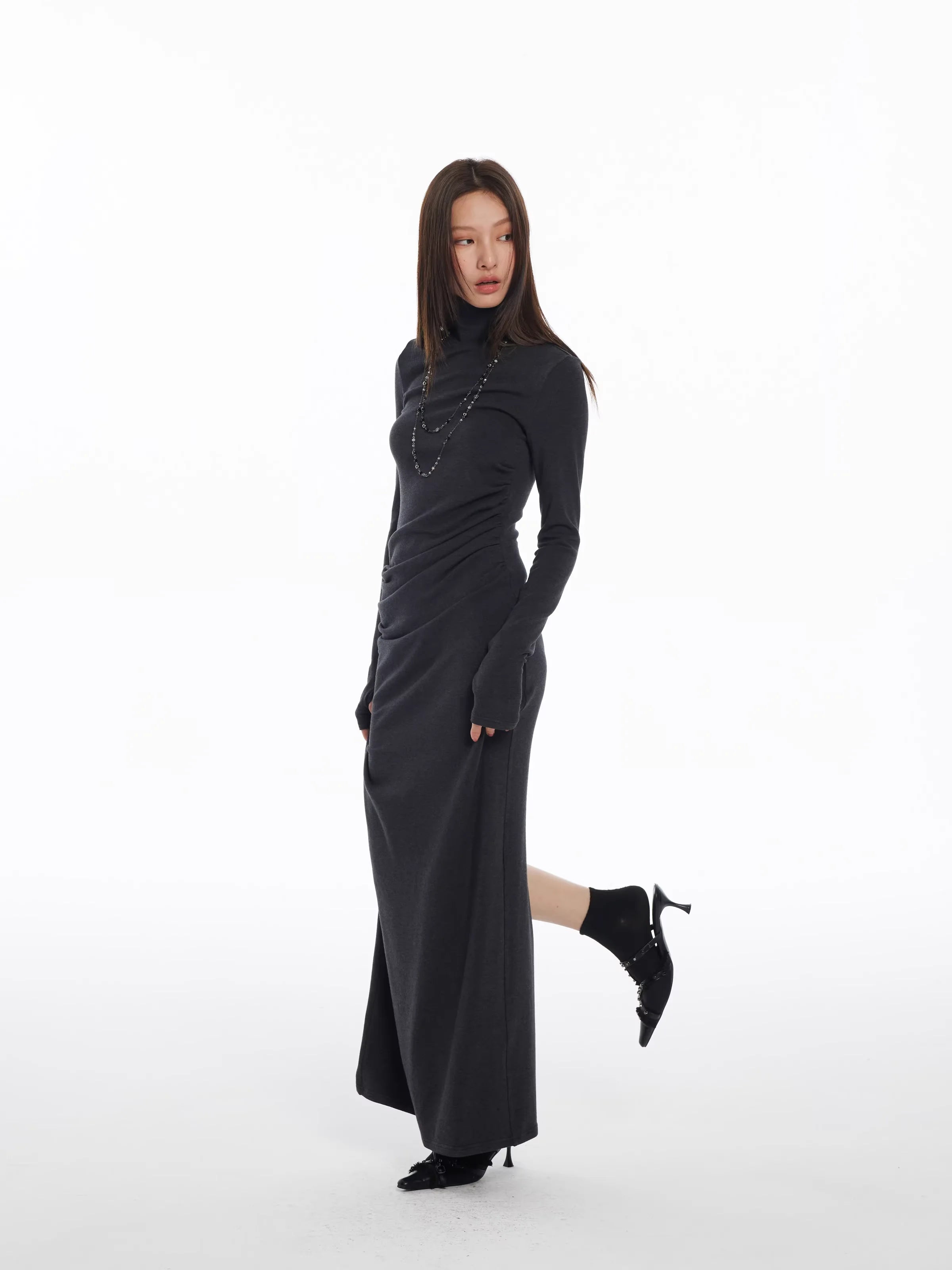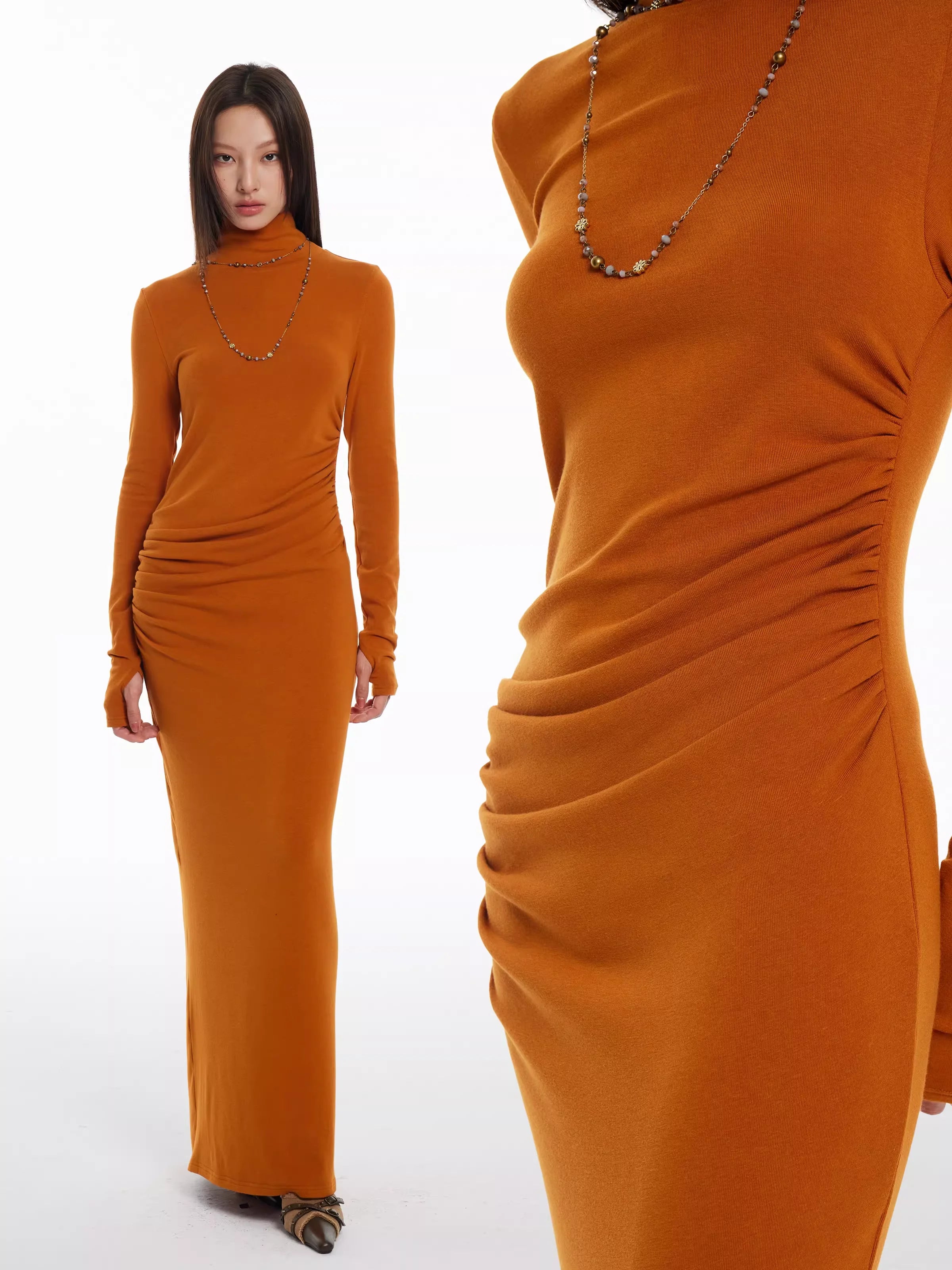 THELIGHT OFFICIAL Women's Slim Fit Ruched Turtleneck Dress - Long Sleeve Bodycon for Autumn Winter