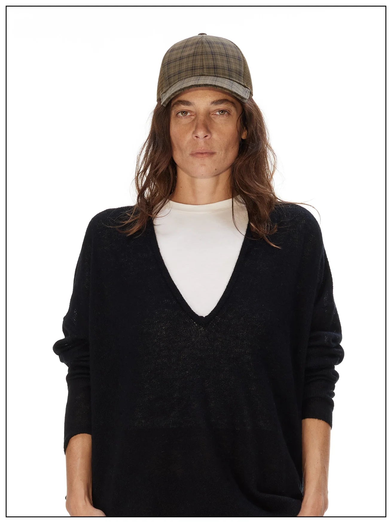 Modeled by a female, this cap pairs effortlessly with relaxed, oversized pieces, making it a versatile accessory for cooler weather and everyday wear.