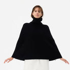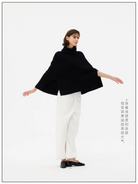 Designed for a balance of comfort and style, this women's high-neck poncho sweater features a rib-knit texture and relaxed silhouette. The wide sleeves and flowy fit evoke a cape-like design, offering warmth and versatility for cooler days. Finished with a double zipper front, this piece adds a modern twist to a classic cold-weather essential.