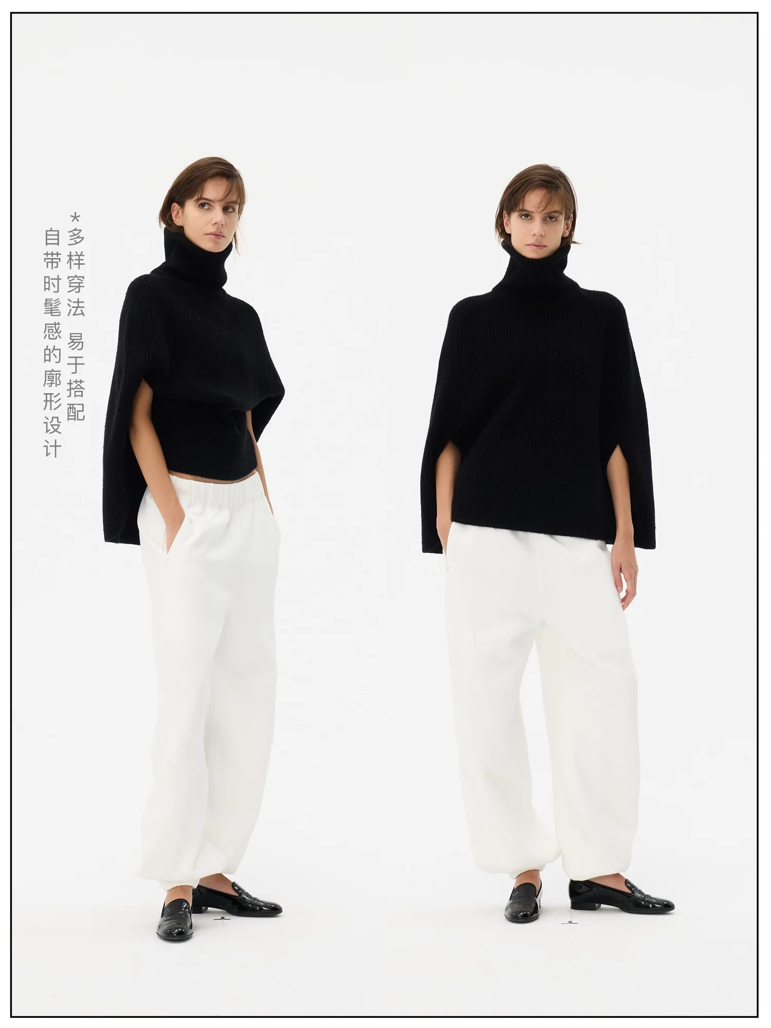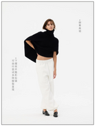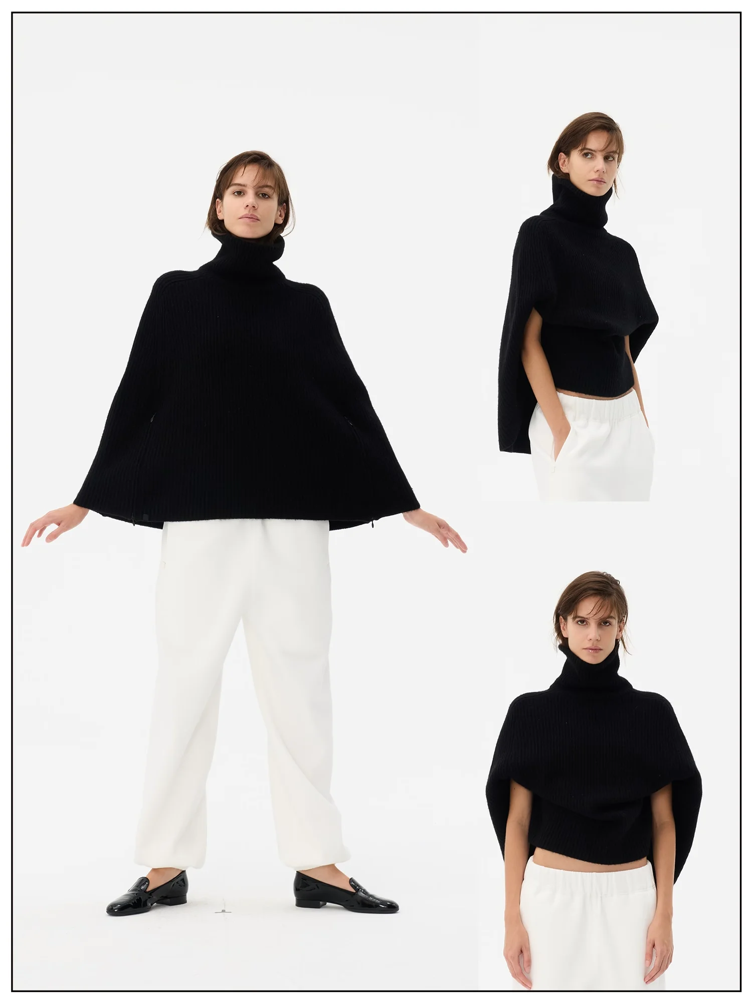 Fax Copy Express Double Zipper High-Neck Knit Poncho Sweater