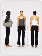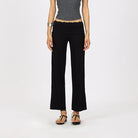 Designed for comfort and ease, these women's wide-leg yoga pants feature a relaxed silhouette ideal for light activities and lounging. The black fabric is complemented by a fold-over waistband with subtle lace trim, adding a touch of softness to the look. Perfect for a casual yet chic ensemble, these pants offer effortless style and comfort.