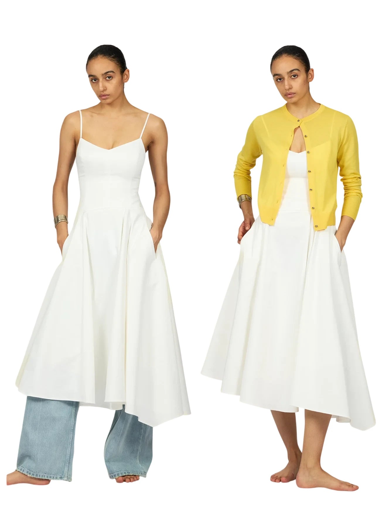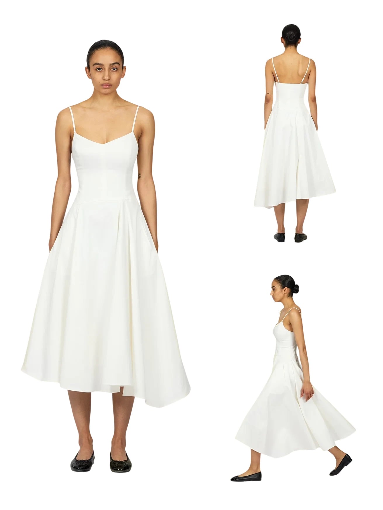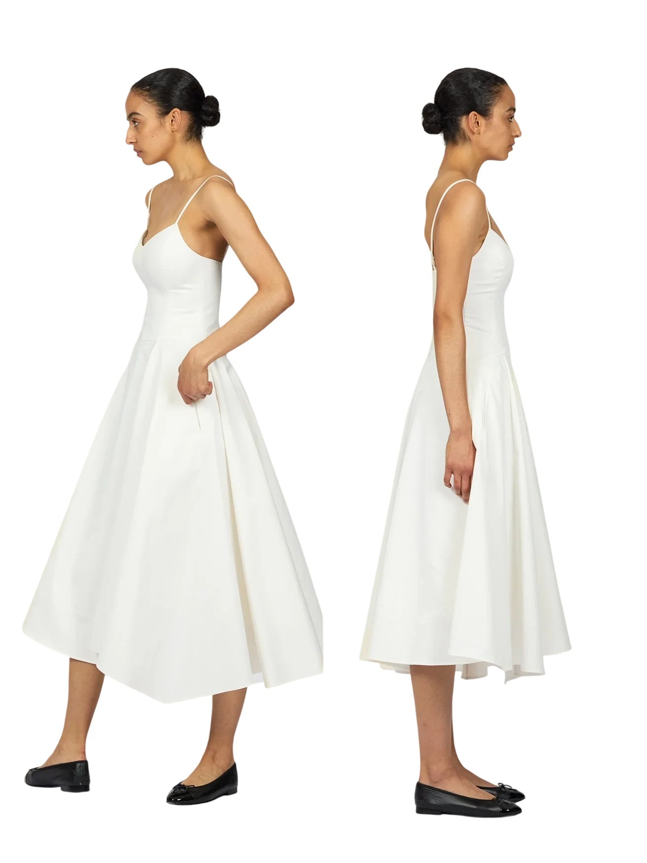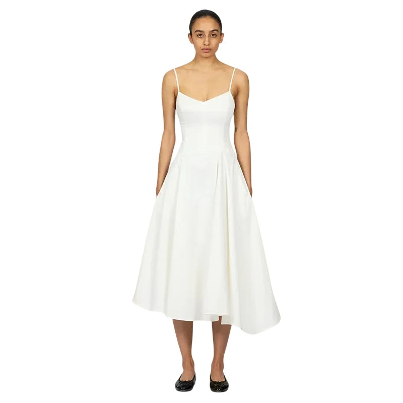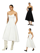 Elevate your summer wardrobe with this elegant white midi dress, designed for effortless style and comfort. Featuring delicate spaghetti straps and a cinched waist, it flatters the silhouette while providing a relaxed fit. The A-line skirt with subtle pleating adds graceful movement, making it perfect for formal and semi-formal occasions. Ideal for vacations or warm-weather outings, this sleeveless women’s dress combines timeless design with seasonal charm.