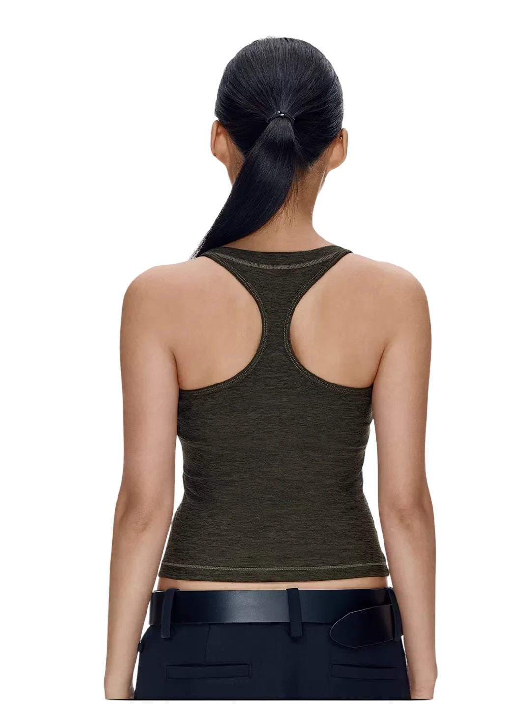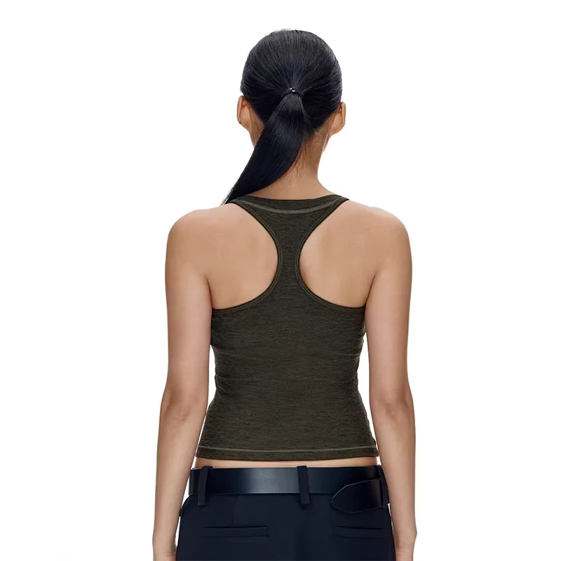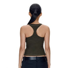 Designed for both performance and style, this women's racerback yoga tank top features a flattering low-cut U-neckline and a fitted silhouette that moves with you. The dark olive green color adds a sleek, modern touch, while the high-cut sides and racerback design provide maximum mobility and breathability. Perfect for yoga sessions or casual wear, this sleeveless tank top pairs effortlessly with high-waisted bottoms for a streamlined look.