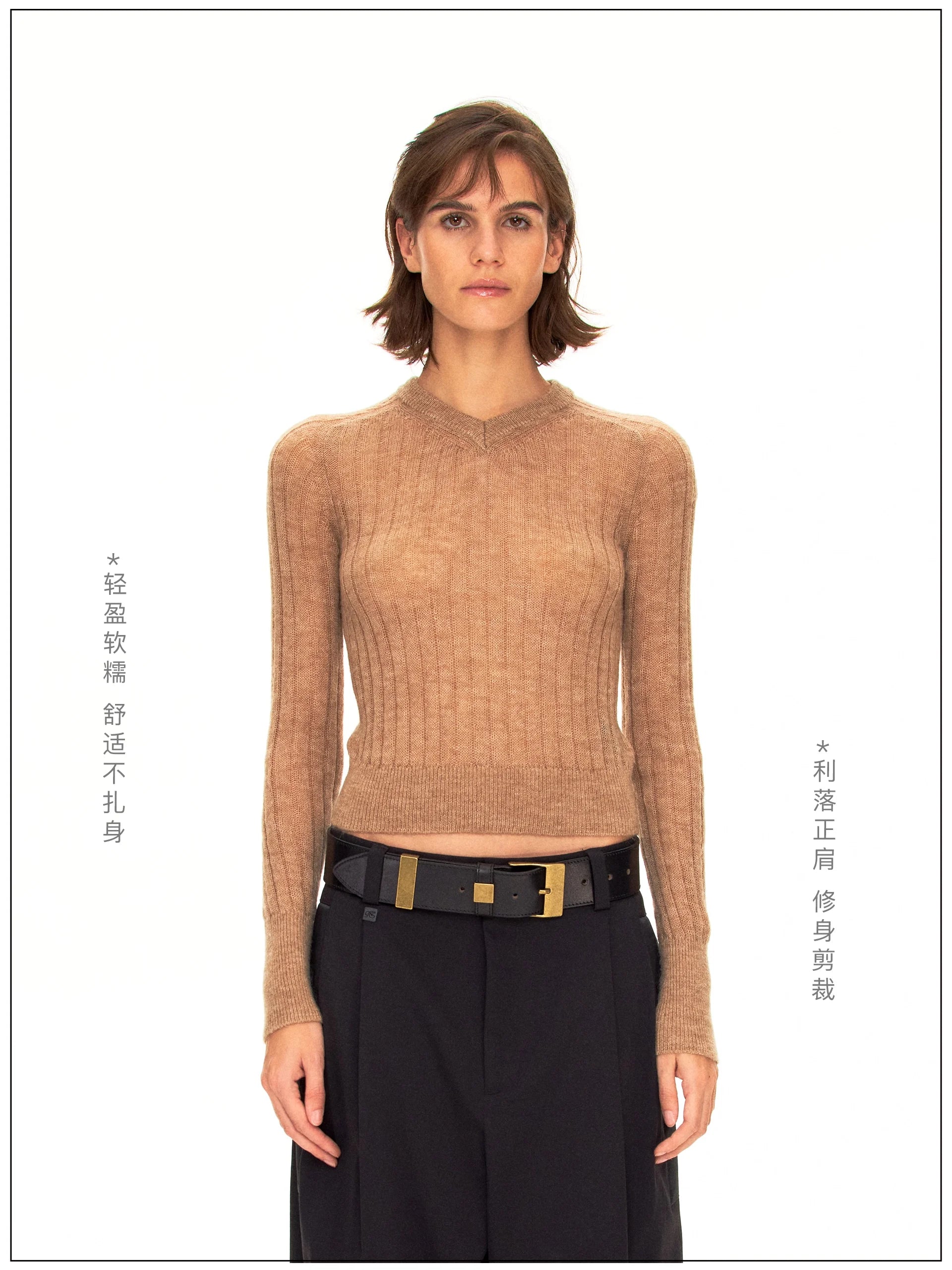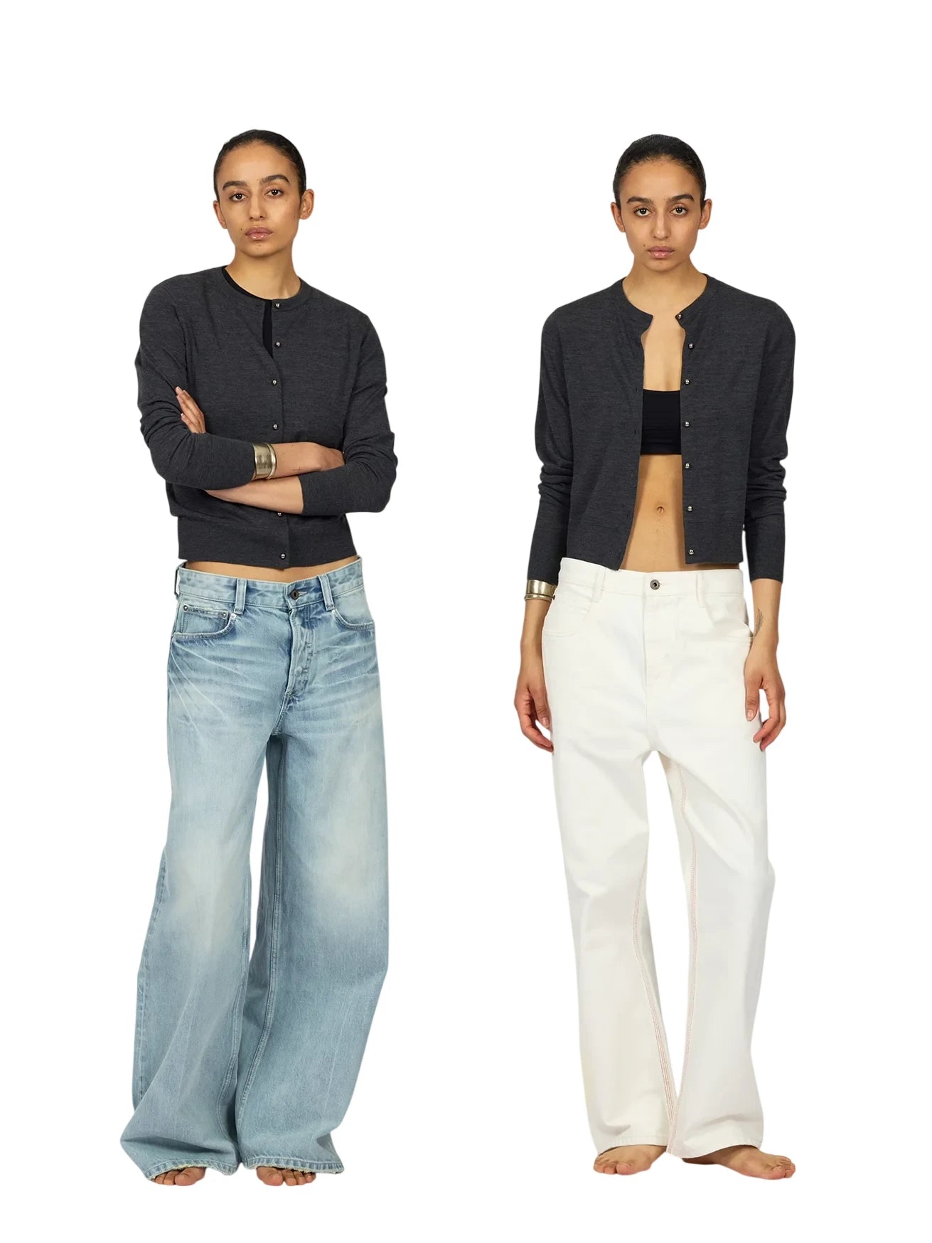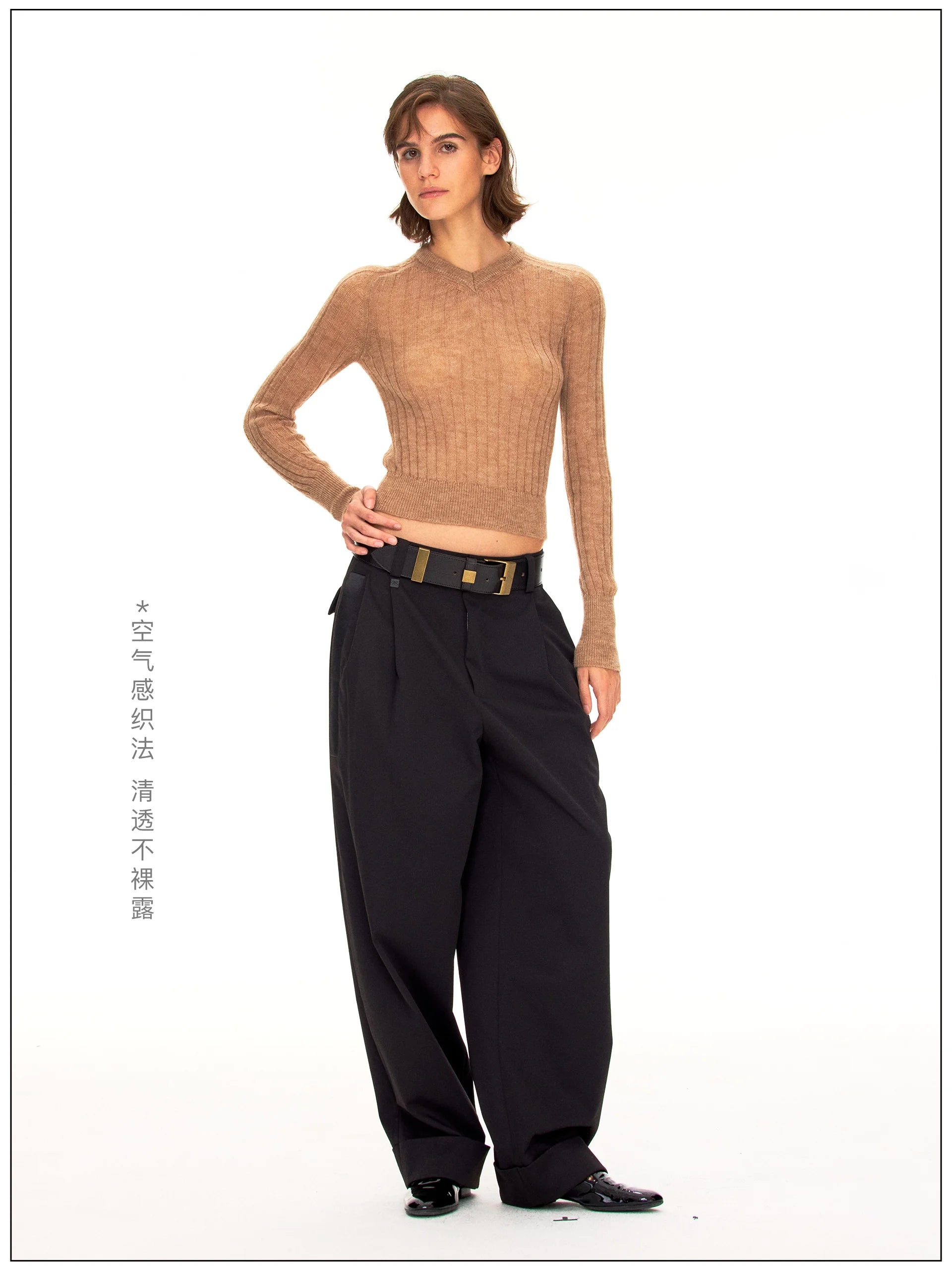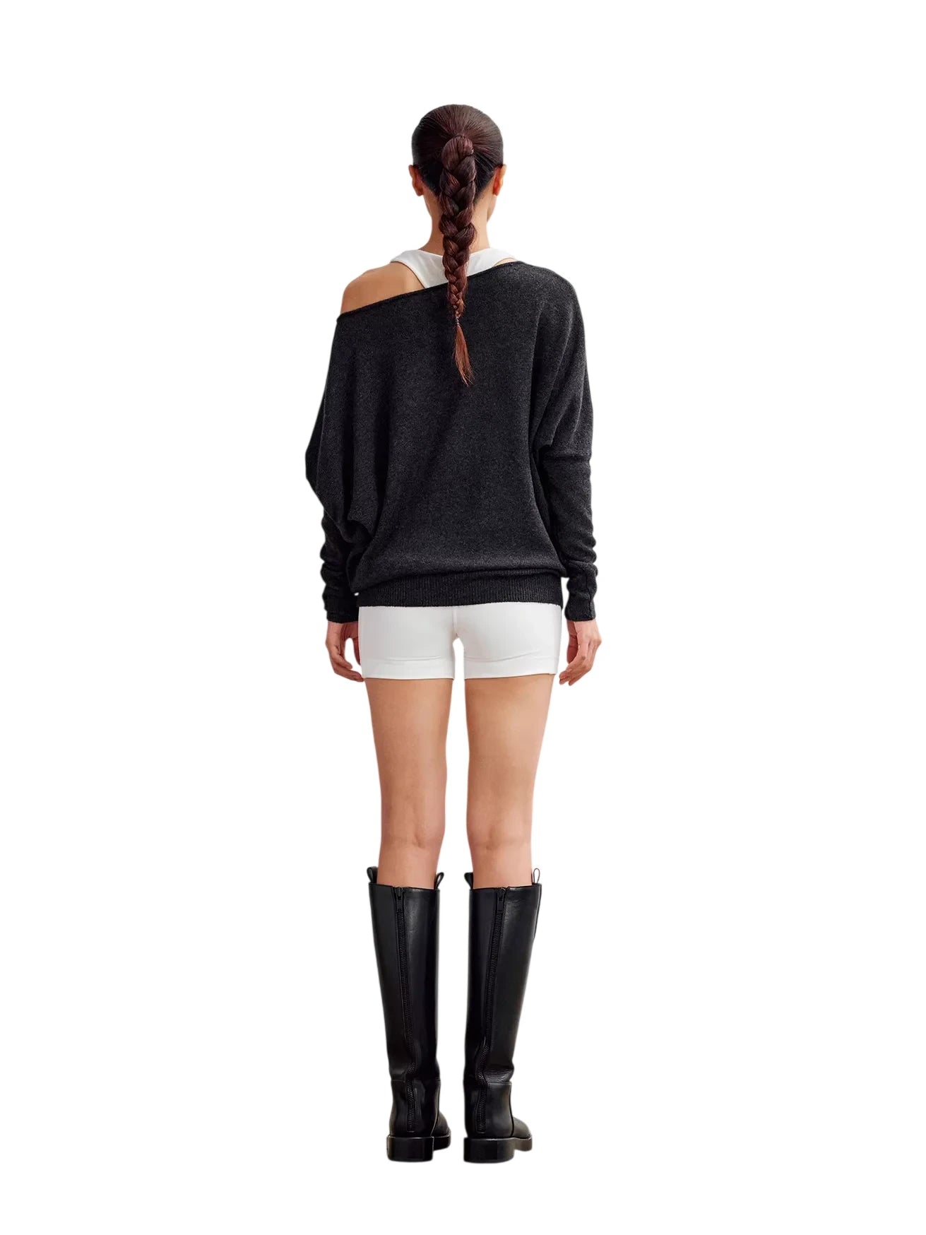 Fax Copy Express Faux Two-Piece Slim Fit Long Sleeve Crop Top