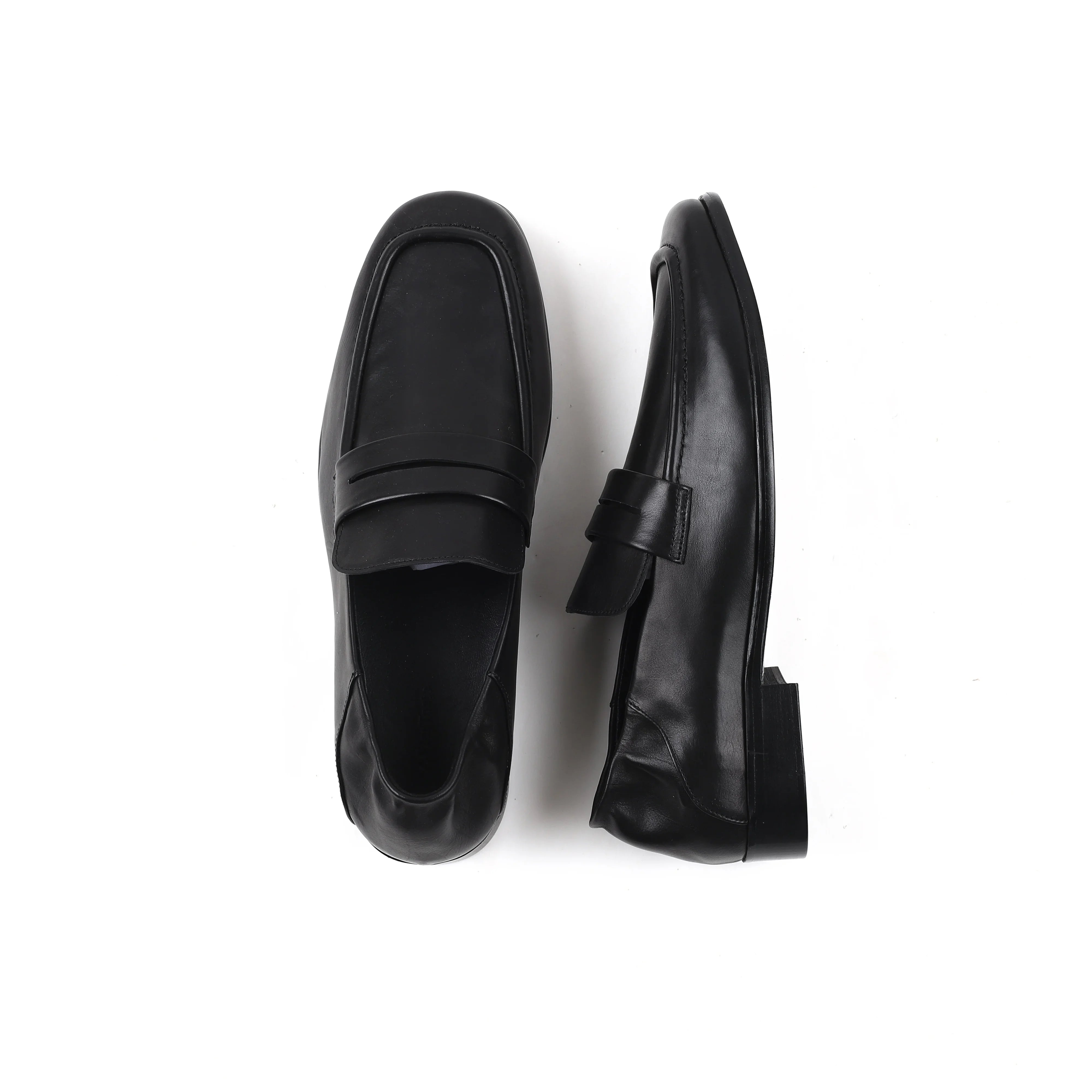 Designed with a lightly squared toe and signature penny strap detailing, they combine timeless style with refined craftsmanship. A smooth leather finish and low heel construction complete the polished look, making them a sophisticated choice for any occasion.