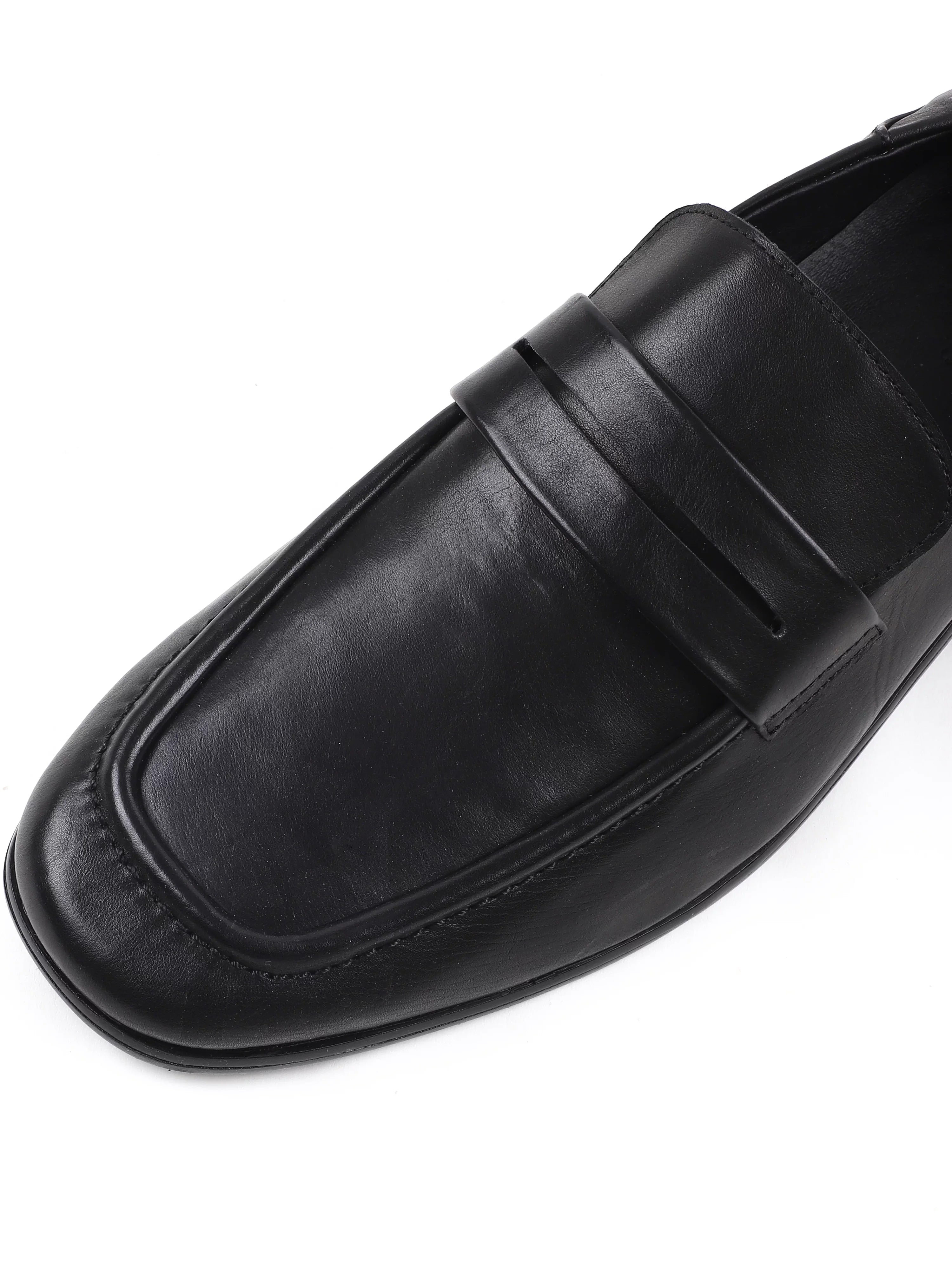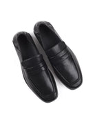 Upgrade your formal footwear collection with these men's black Italian leather penny loafers. Crafted from premium imported calf leather, these loafers offer a sleek, minimalistic silhouette ideal for dress and business settings.