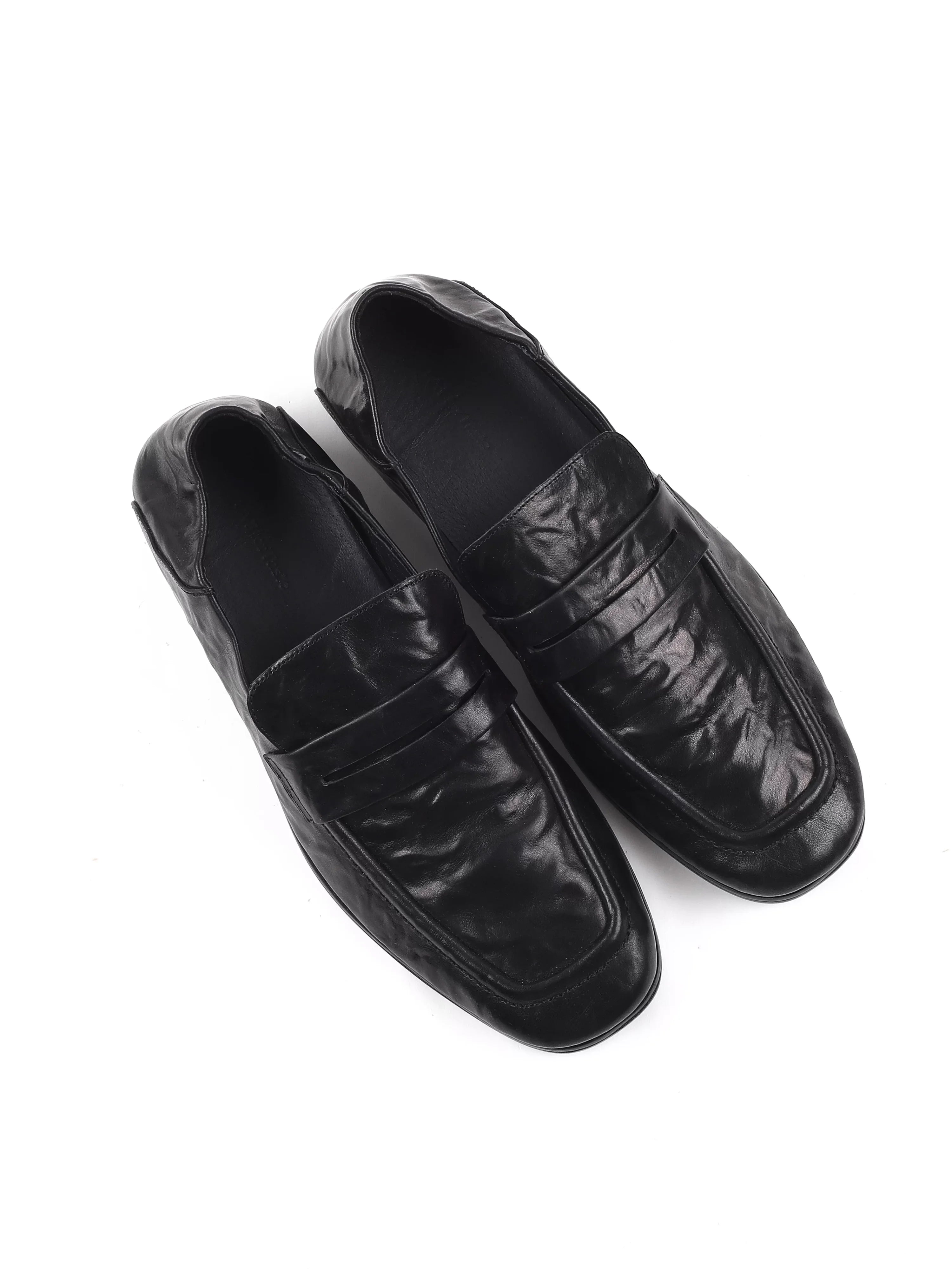 AFterTaste Men's Black Italian Leather Penny Loafers