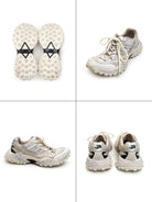 Step into retro-inspired style with these vintage distressed chunky trail sneakers, designed for everyday durability and comfort. Featuring breathable mesh panels, rugged outsoles for superior traction, and a cushioned design, these unisex sneakers effortlessly blend utility with streetwear flair. Offered in two versatile colorways—light beige with silver accents and all-black—they're perfect for those who love a bold, athletic aesthetic.