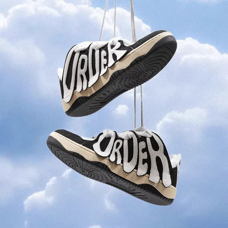 Step into standout streetwear with these black and white panda style skate shoes, designed for both men and women. These stylish low-top loafers feature bold 3D 'ORDER' lettering on the sides, thick textured soles for enhanced grip, and a comfortable suede-like upper. Ideal for casual wear or skateboarding, their unique design and unisex appeal make them a must-have for fashion-forward individuals.
