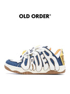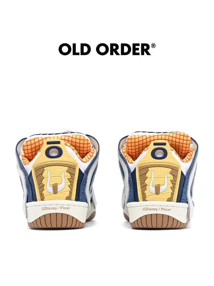 Step into a playful adventure with these women's skate shoes inspired by Woody from Disney Pixar's Toy Story. Featuring a vibrant blend of denim blue, white, yellow plaid, and cow-print accents, these sneakers embody Woody's iconic western look. Bold “ORDER” lettering decorates the side panels, and themed lace ornaments add a whimsical touch. Part of the OLD ORDER Original Sneaker Series, these shoes combine classic skate style with nostalgic charm.