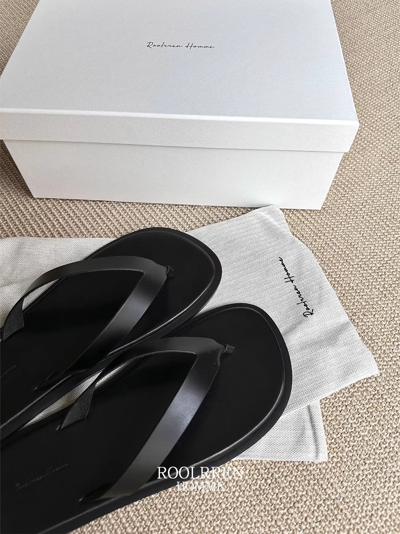 Roolrren homme Italian Suede Non-Slip Flat Flip Flops