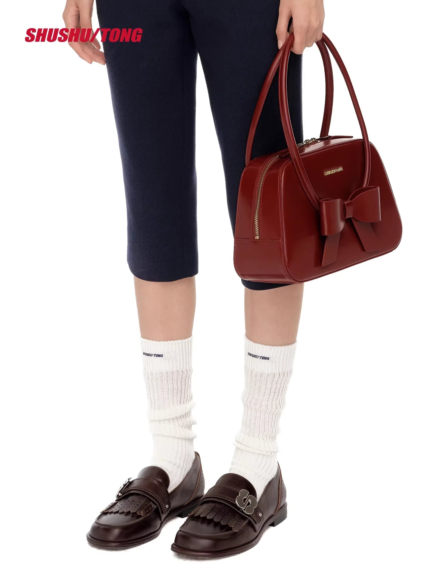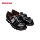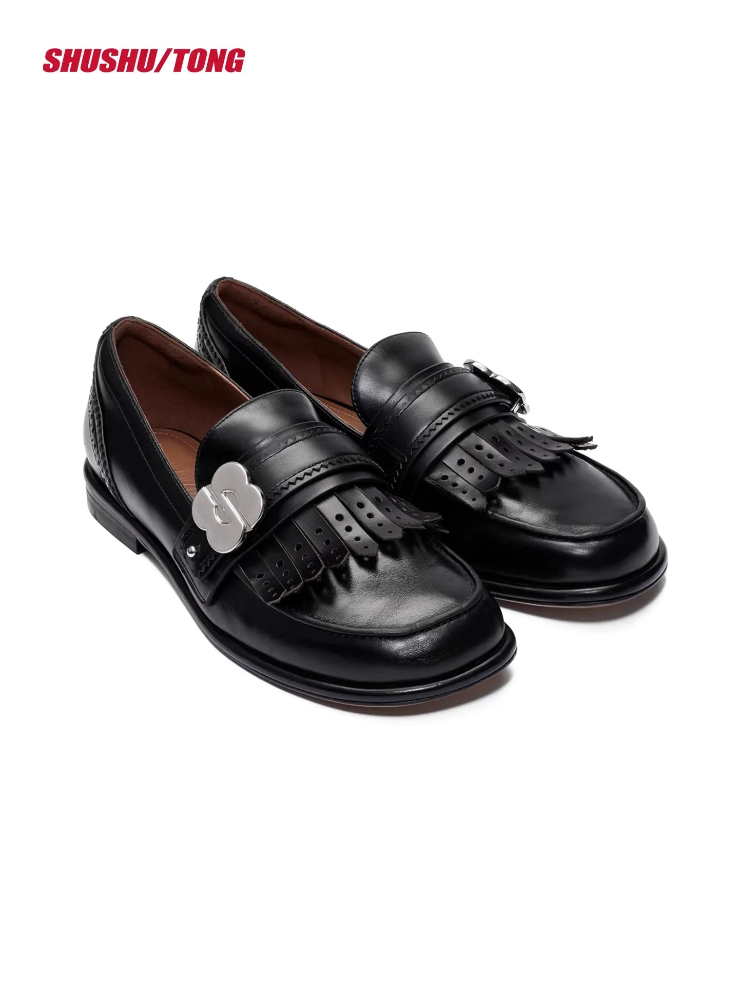 shushutong 2025 Winter Square-Toe Loafers with Fringe and Buckle Detail