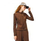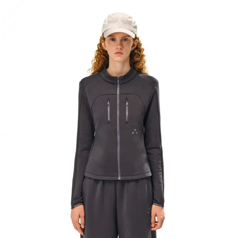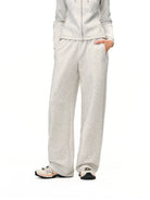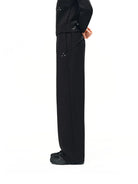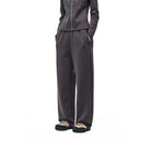 Elevate your casual wardrobe with this women's double-sided air cotton knit lounge set, perfect for spring and autumn wear. The outfit features a long-sleeved top with a high neckline and wide-leg, straight-cut pants for a relaxed yet stylish silhouette. Designed in a sleek dark gray tone, both pieces include subtle graphic details for a modern streetwear look. Complete with side pockets and made from soft, breathable material, this set offers both comfort and contemporary flair for everyday wear.