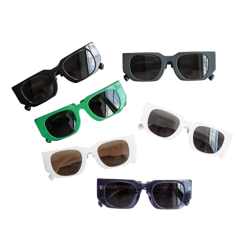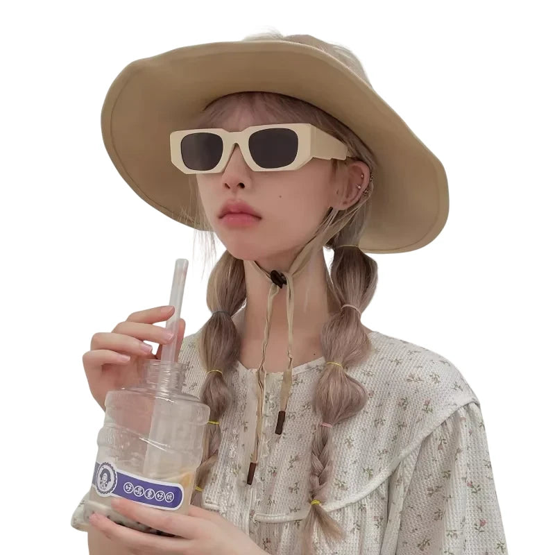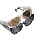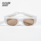 Make a bold statement with these avant-garde rectangular sunglasses, designed for both men and women. Featuring chunky, oversized frames, this fashion-forward eyewear combines retro appeal with futuristic flair. The style includes a matte white frame with warm brown lenses and a translucent grayish-purple frame with dark lenses, perfect for elevating your everyday look.