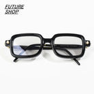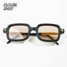 These unisex rectangular sunglasses feature a bold, punk-inspired design that blends retro elements with a modern hip-hop aesthetic. The thick black frames offer a statement-worthy silhouette, while the slightly tinted lenses in brown and black add functional flair. Subtle gold and silver accents near the hinges enhance the avant-garde style, making these frames a fashionable yet versatile choice for any setting.