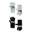 Stay warm and stylish with this 2-in-1 set of women's knit gloves featuring a charming bow detail at the wrist. Crafted from a soft blend of cashmere and wool, each pair offers a smooth knit texture with ribbed cuffs for added comfort and fit.