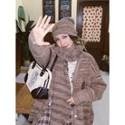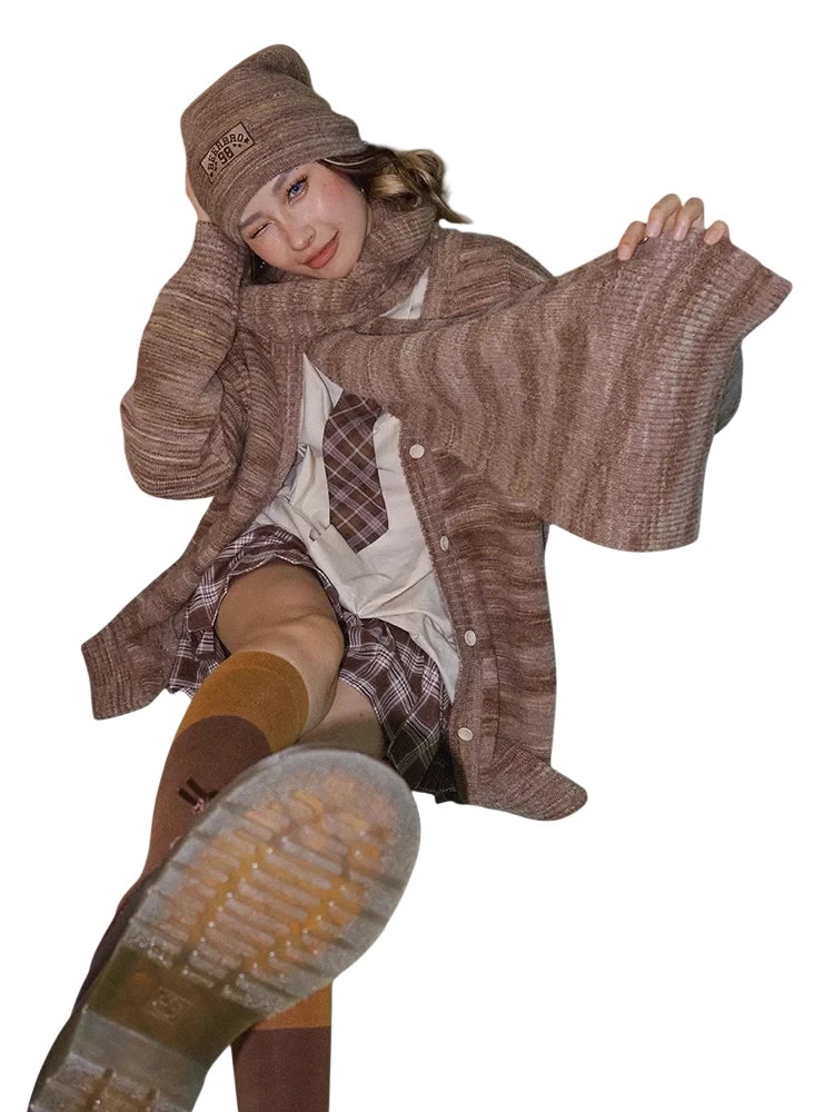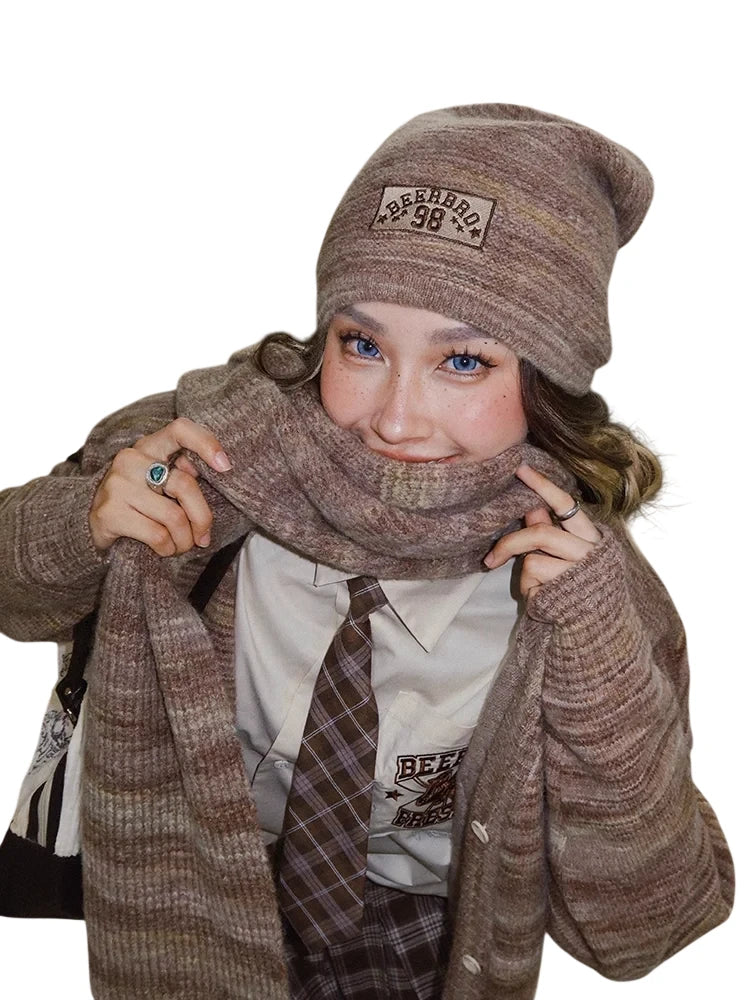 Stay warm and stylish with this cozy knit hat and scarf set, perfect for cold weather. Featuring a gradient camel color scheme, the set includes a soft fleece beanie with a front patch and a coordinating textured scarf with delicate embroidery. Ideal for layering, this winter accessory set is designed to provide both comfort and a fashionable look for women.