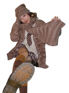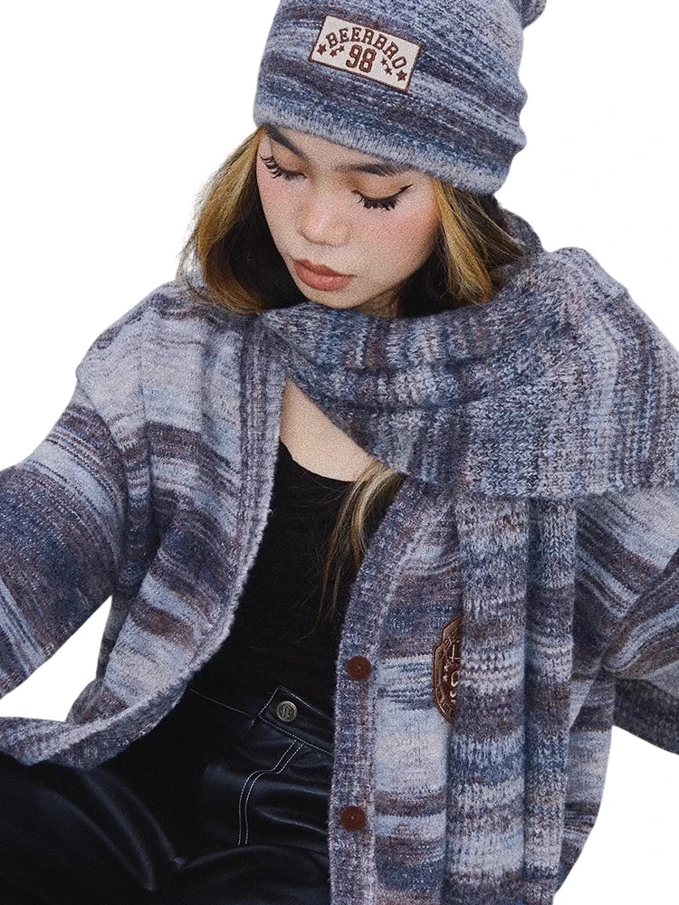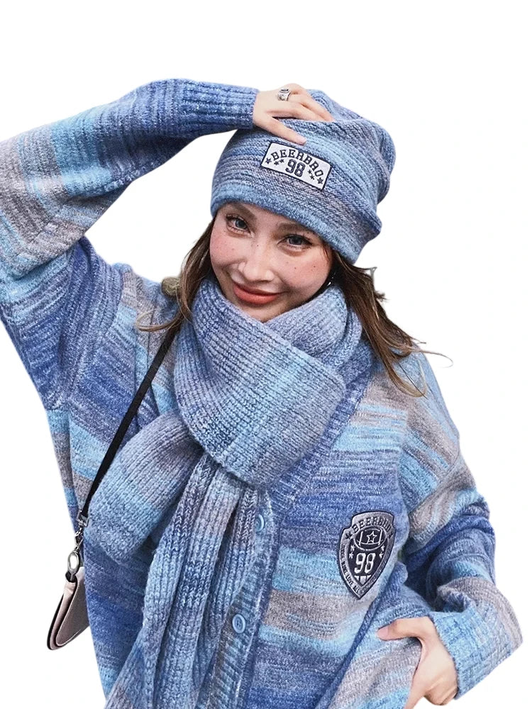 BeerBro Gradient Camel Fleece Knit Hat and Embroidered Scarf Set