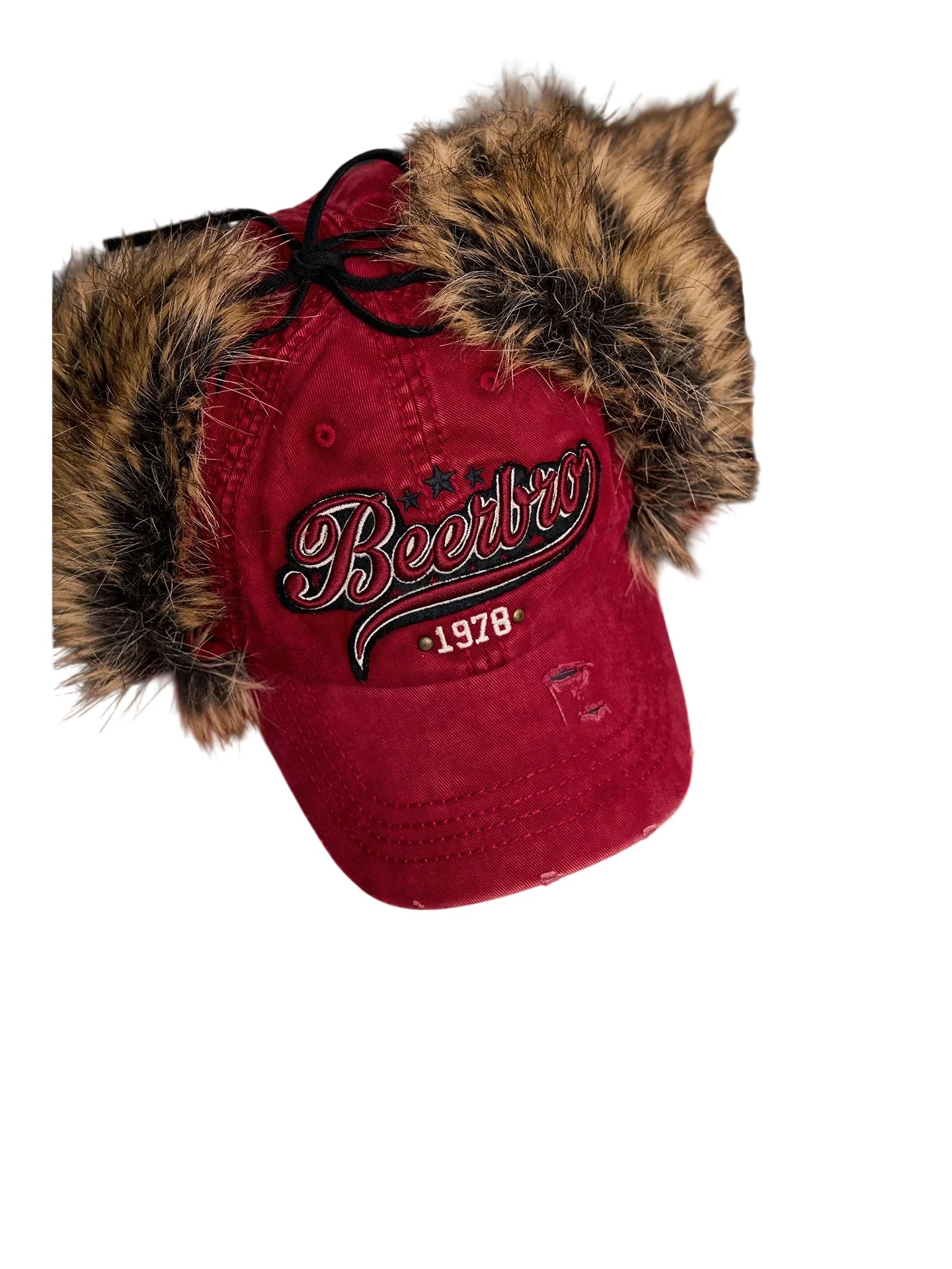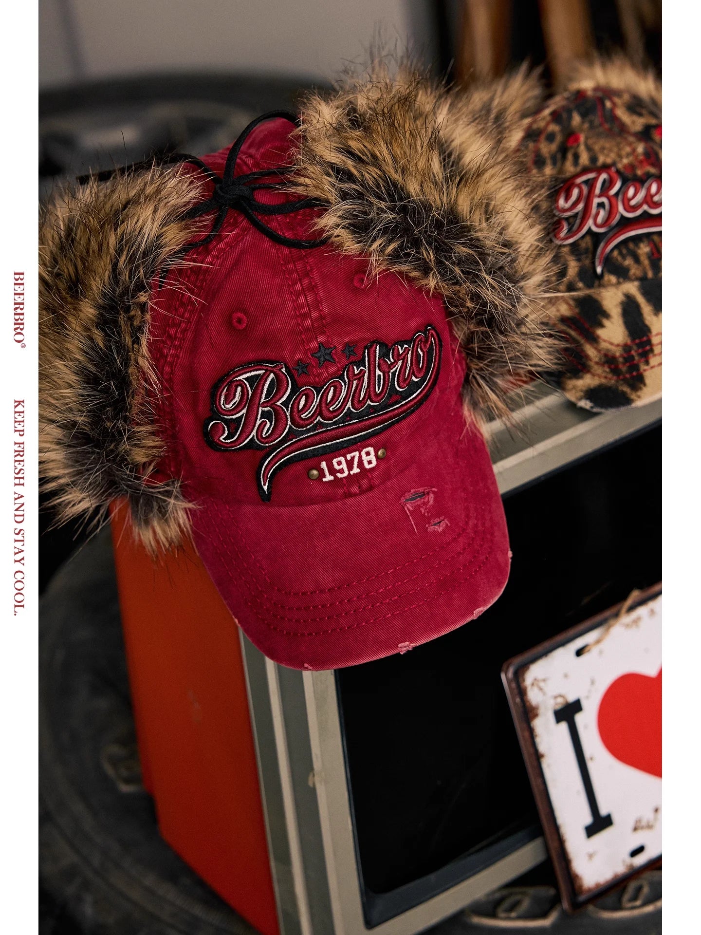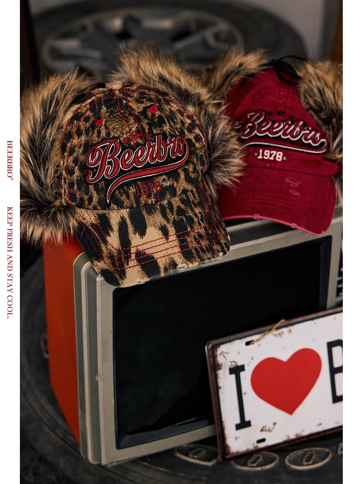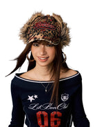 BeerBro Leopard Print Color-Block Furry Trapper Hat with Embroidery