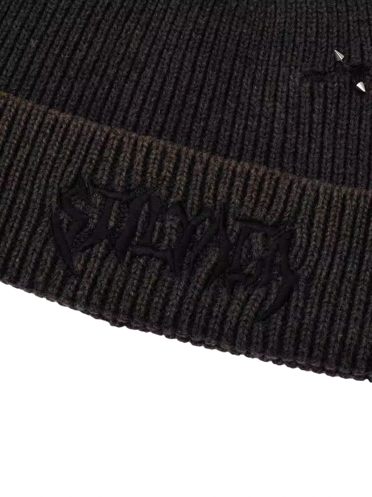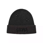 Stay warm and stylish with this black ribbed knit beanie featuring gothic-style embroidered lettering. Designed with a thick folded brim and distressed details, this beanie adds a bold, streetwear-inspired edge to any outfit. Suitable for both men and women, it's the perfect accessory for fashion-forward individuals looking to make a statement.