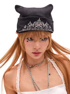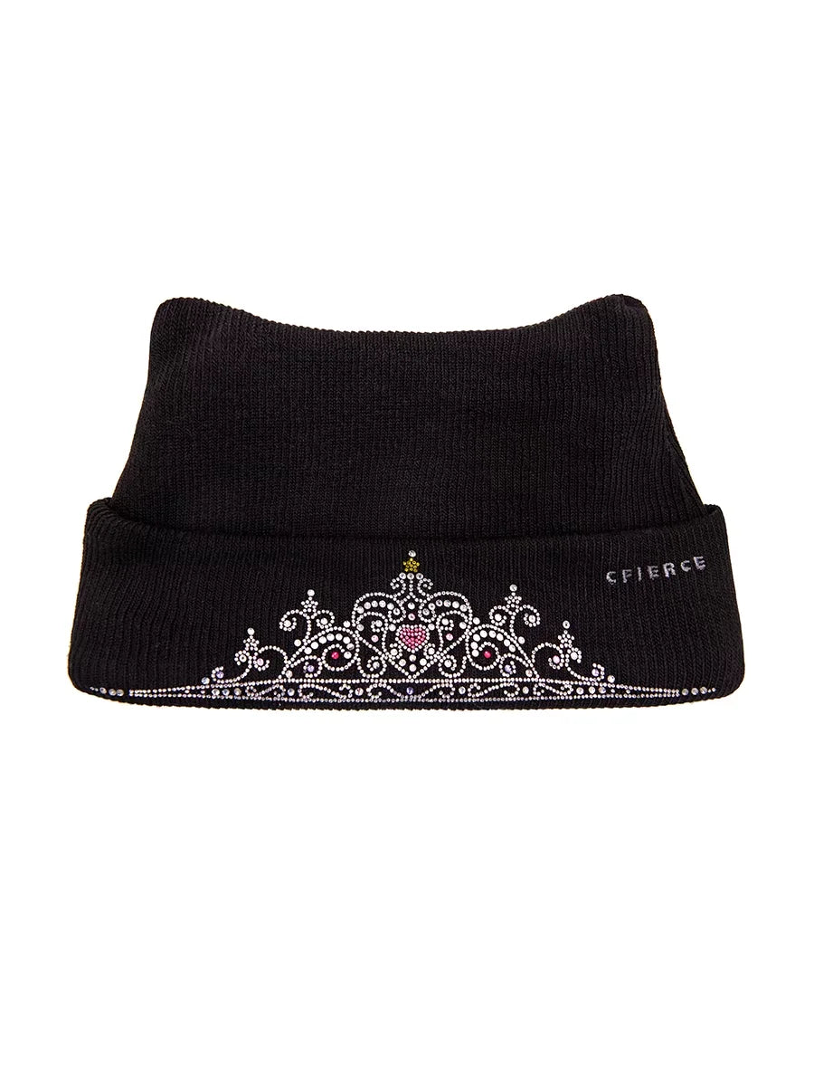 Stay cozy and stylish with this women's knit beanie, designed for the Spring and Summer 2025 seasons. This black beanie features a wide cuffed brim adorned with a shimmering tiara-inspired rhinestone design in white, pink, and yellow hues. Combining casual warmth with a touch of glamour, it's the perfect accessory to elevate your everyday look.