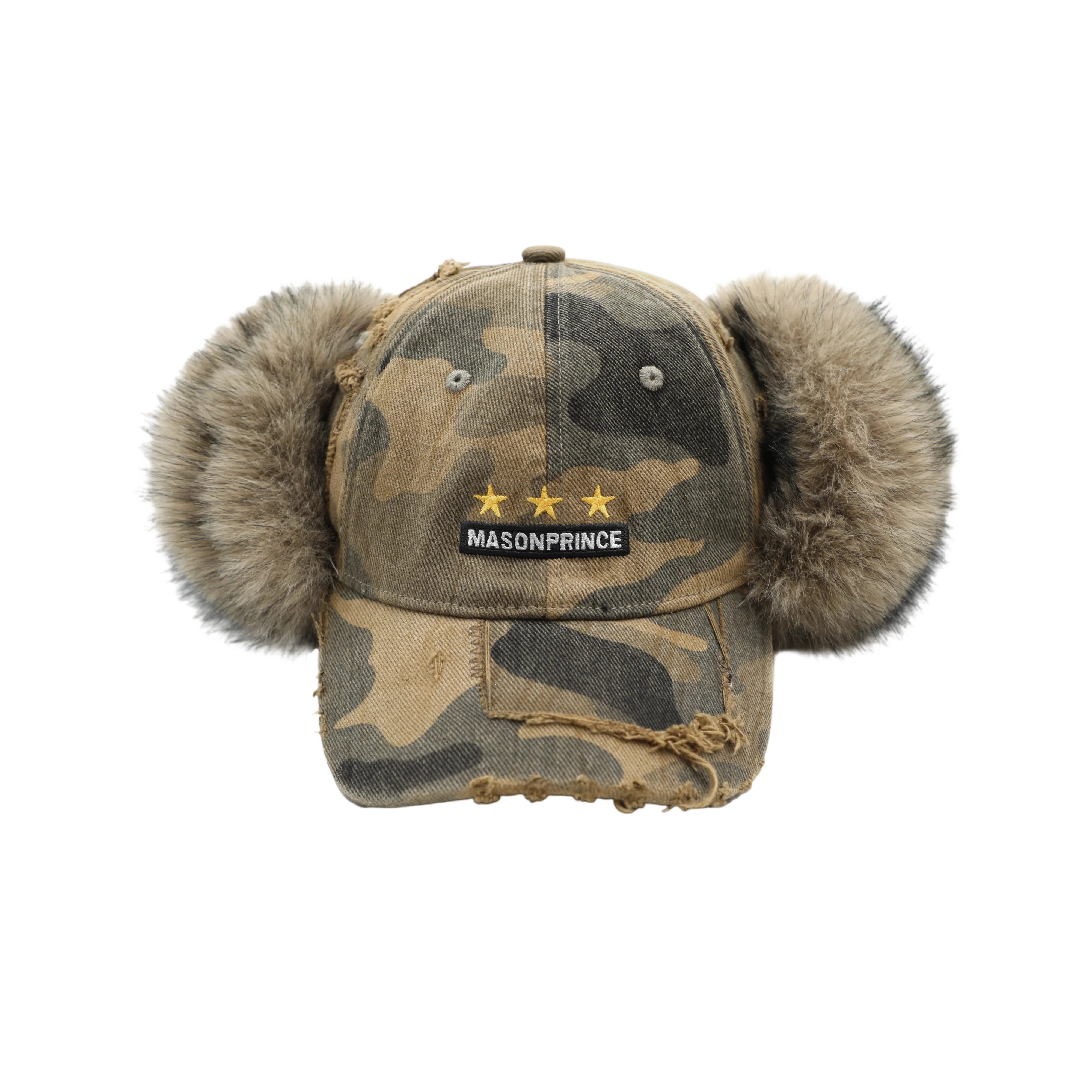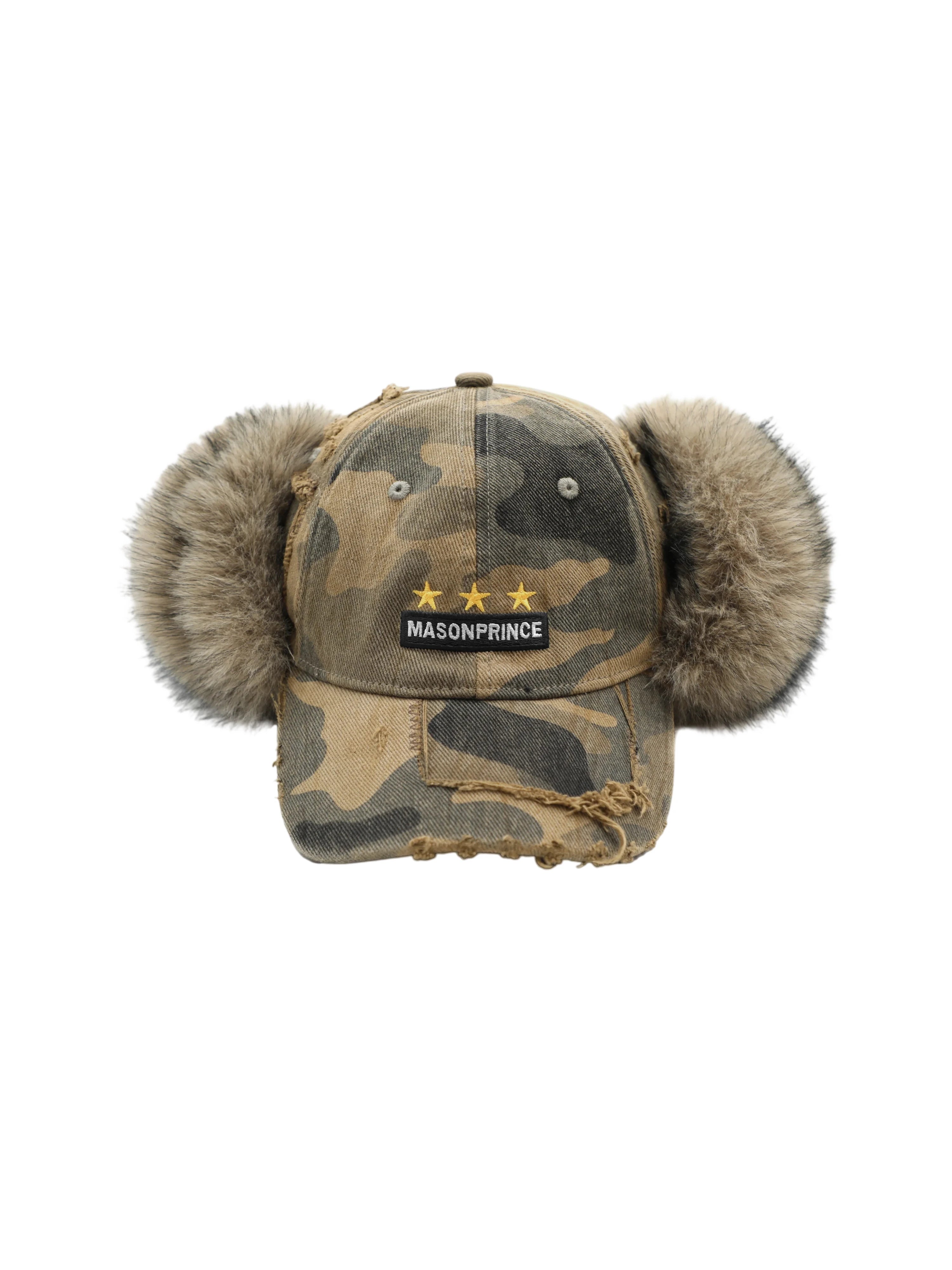 MASONPRINCE Distressed Camouflage Aviator Cap with Faux Fur Earmuffs