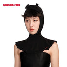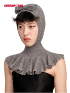 This stylish and unique women's knitted balaclava combines warmth with high-fashion aesthetics. Featuring a soft, structured knit design, it fully covers the head and neck while leaving the face exposed for comfort and visibility.