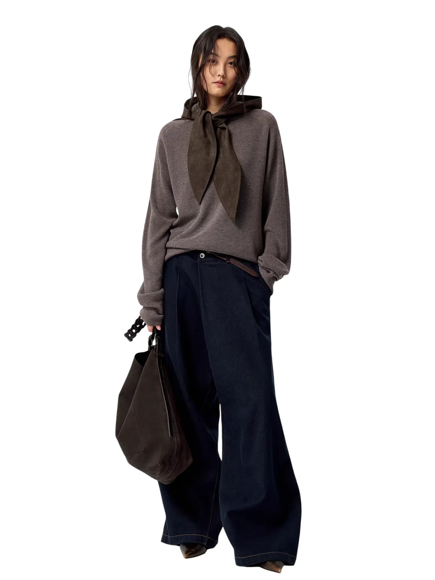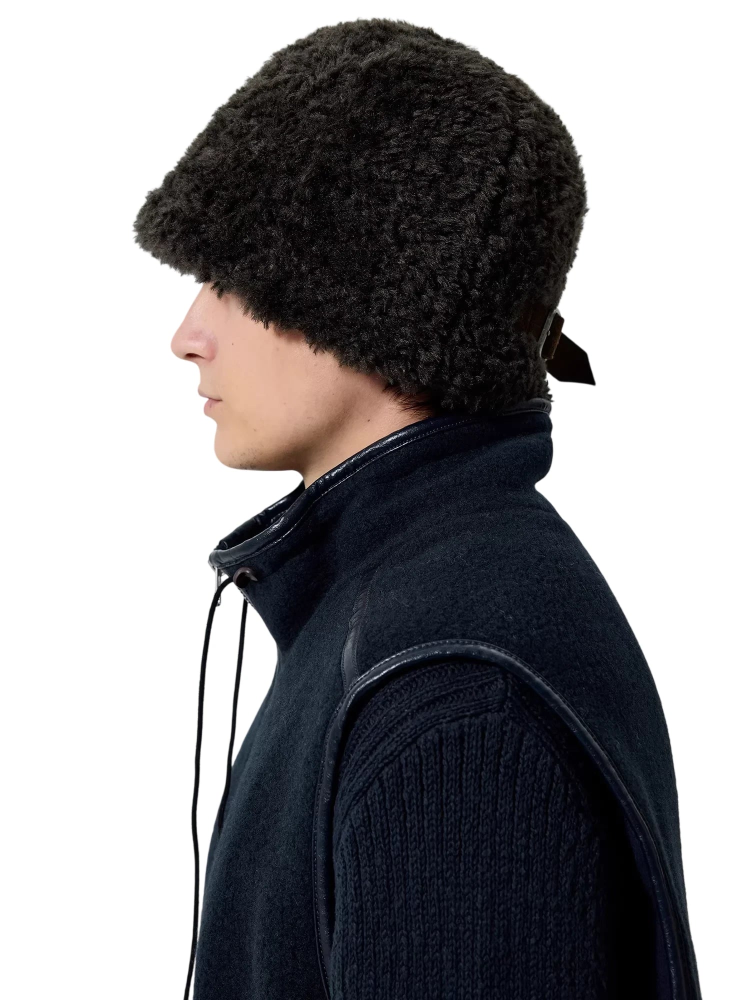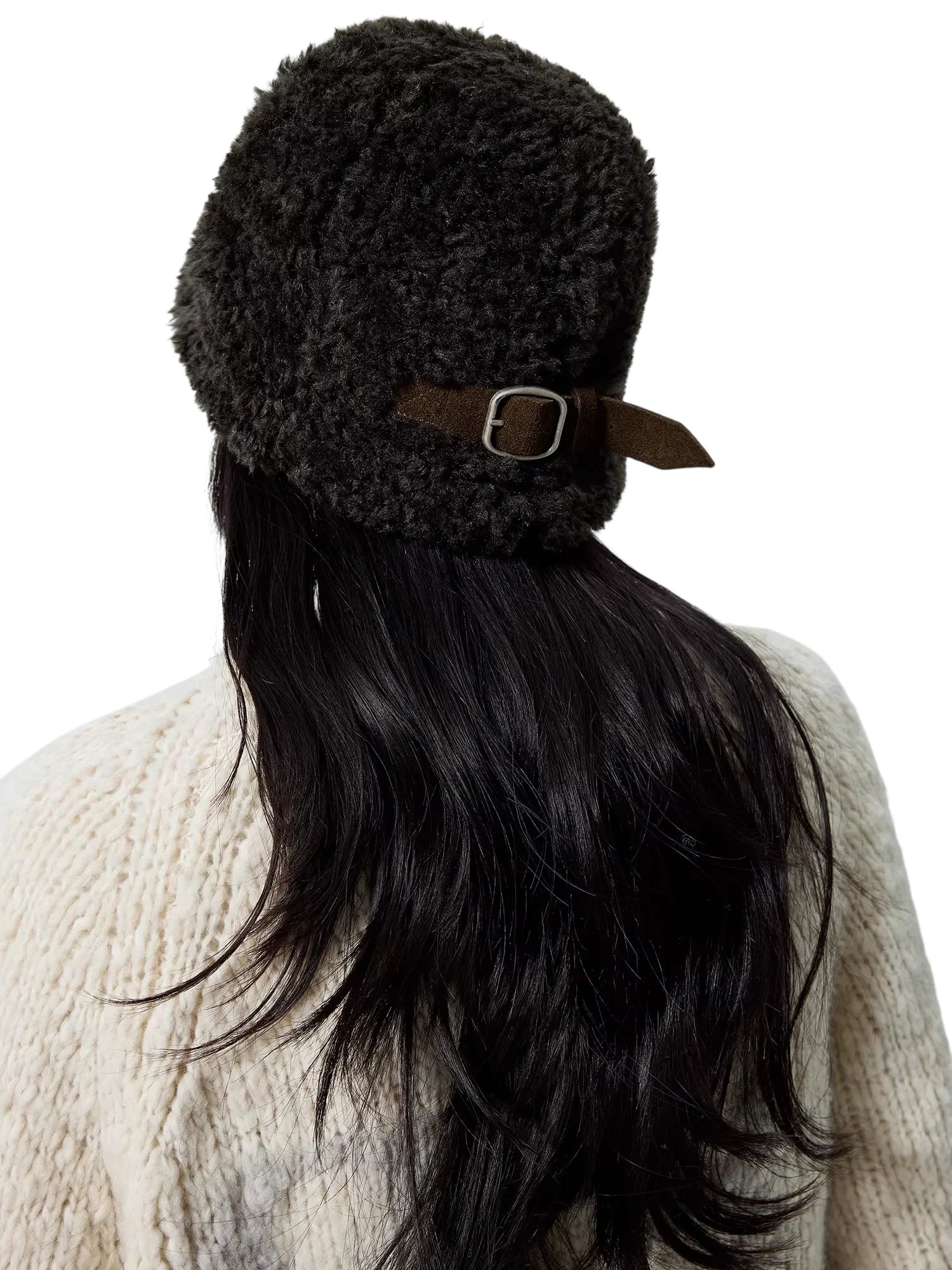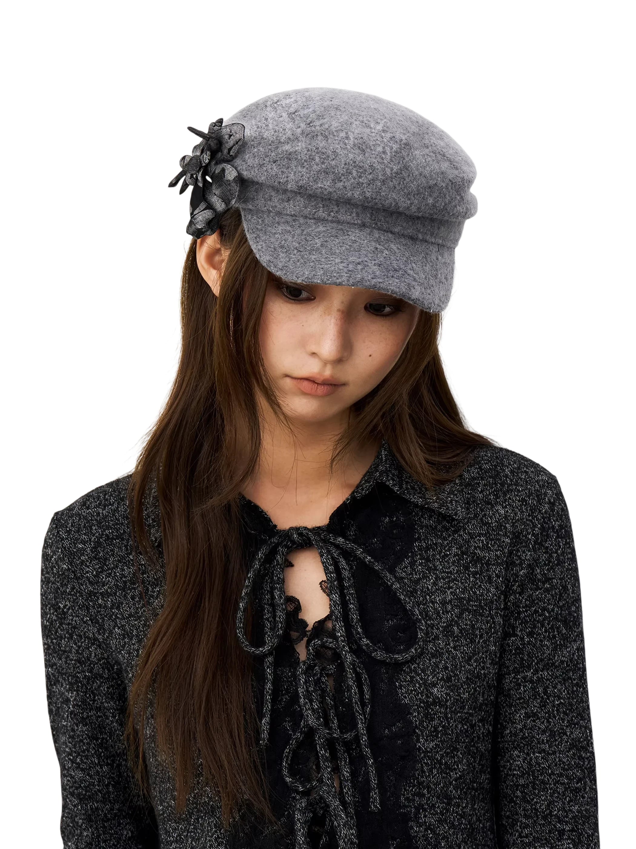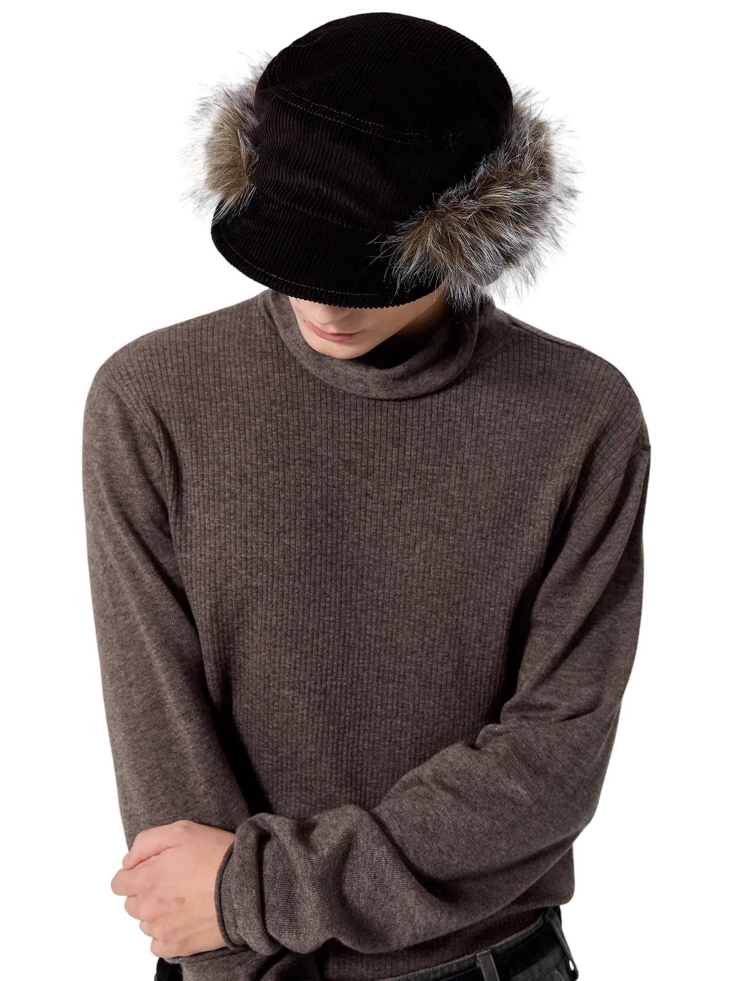 Simple Project Linen Blend Knitted Earflap Hat with Short Brim